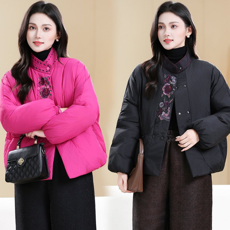 民族风重工刺绣棉衣外套冬季中老年女士国风抗寒保暖羽绒棉服上衣