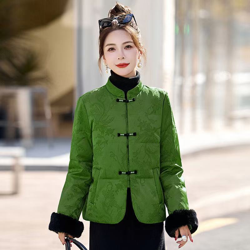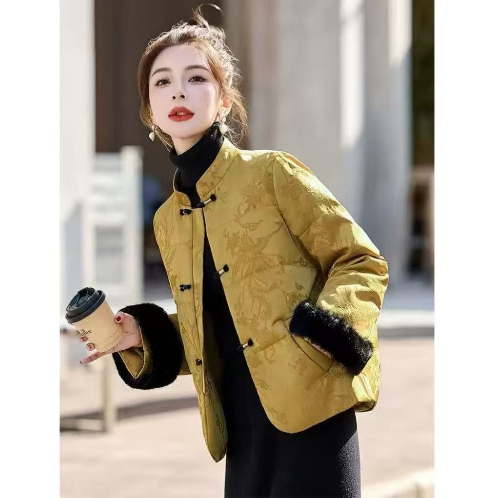 中老年国风水貂毛提花羽绒棉服女保暖冬季新款保暖盘扣轻便外套女