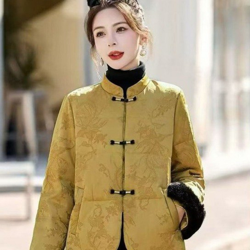 新中式轻国风羽绒棉女中老年冬季高级感复古提花盘扣加厚保暖外套