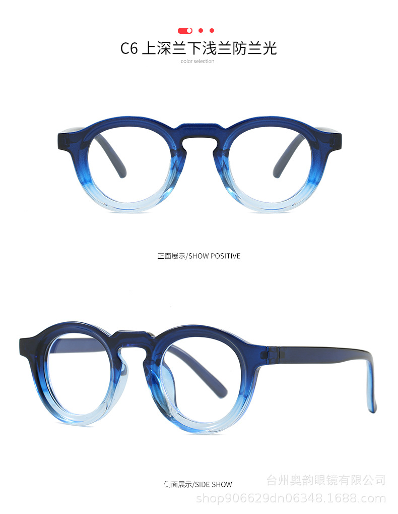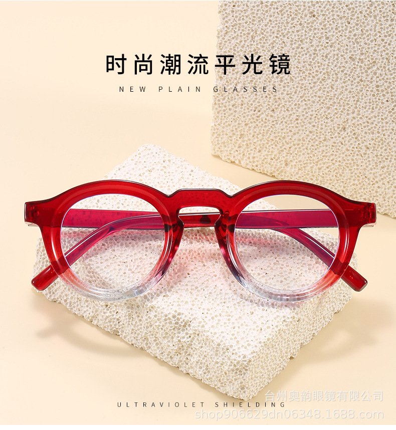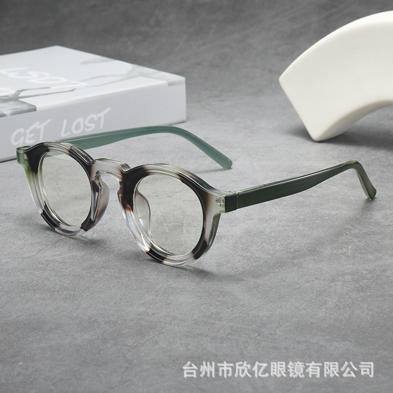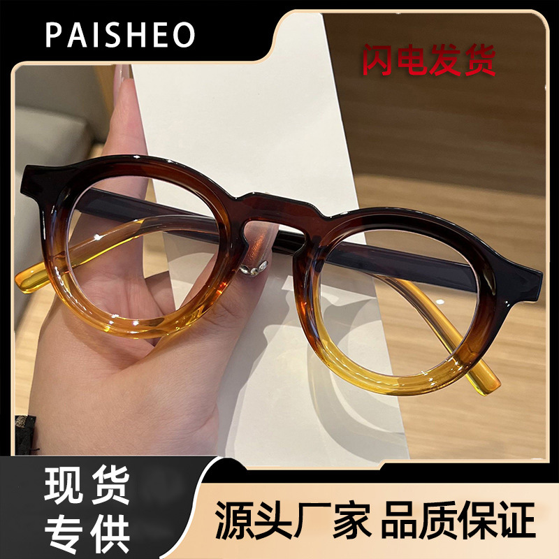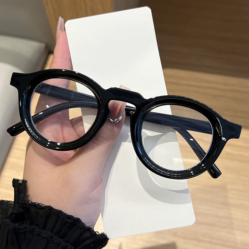 2025年クロスボーダー新作レトロヒップホップ無地メガネ韓国風丸型厚め小フレーム個性派ファッション男女兼用無地メガネ