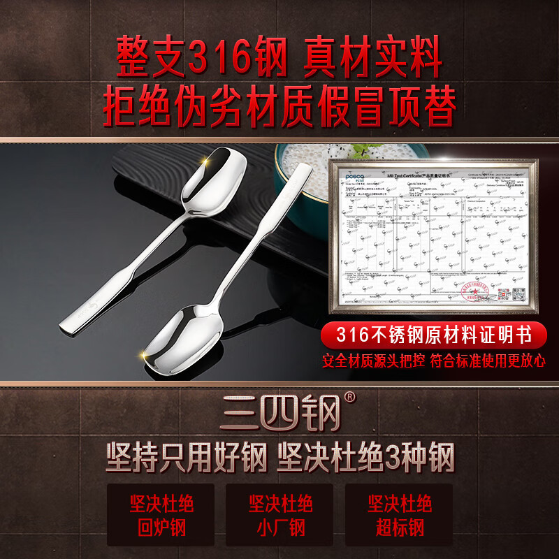 三四钢® 316不锈钢勺子食品级家用吃饭汤匙可爱甜品勺加厚调羹勺