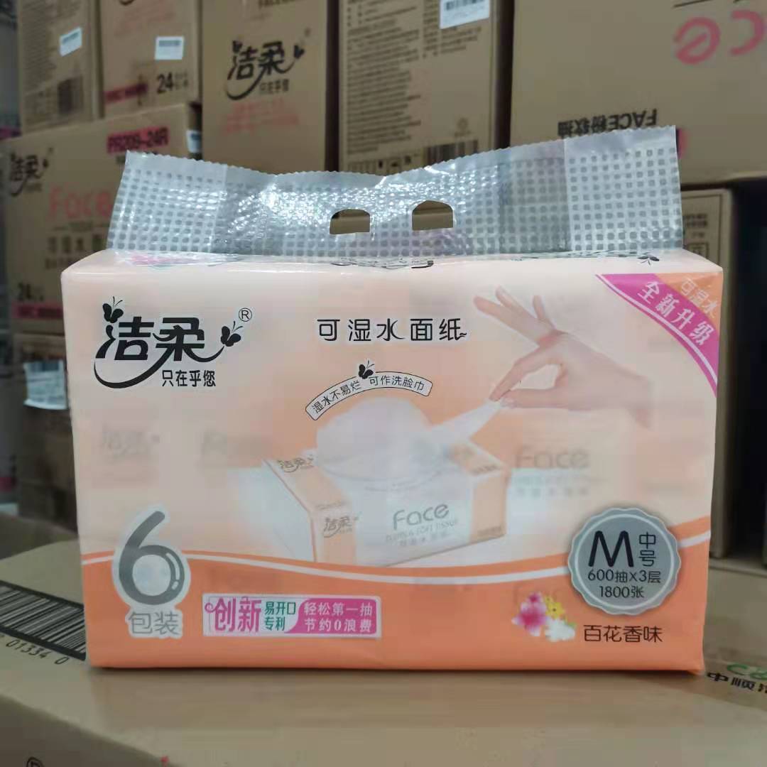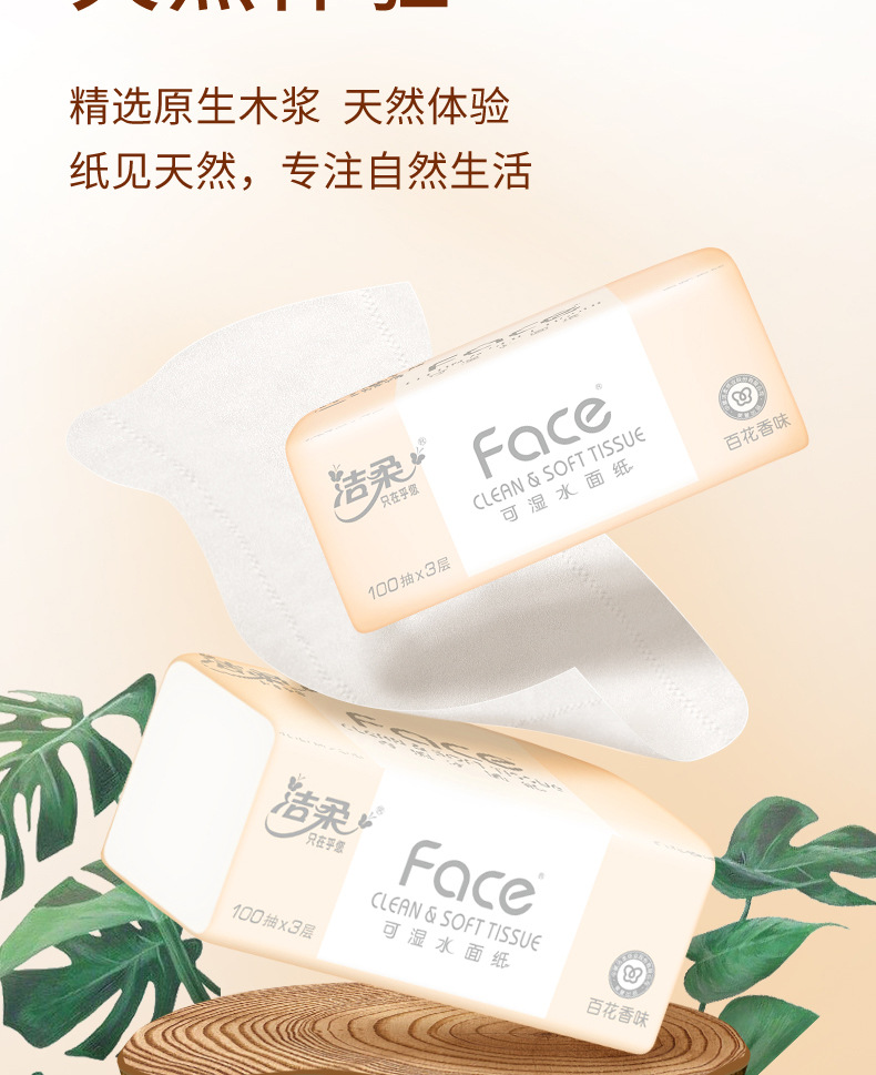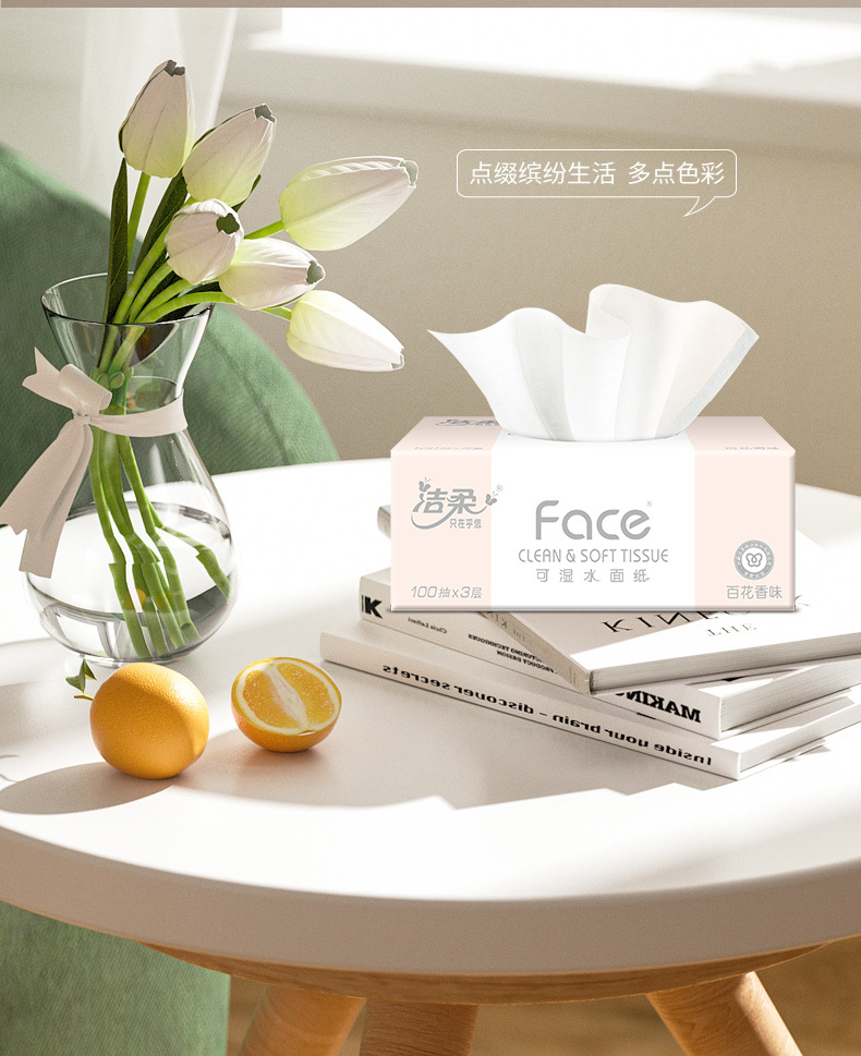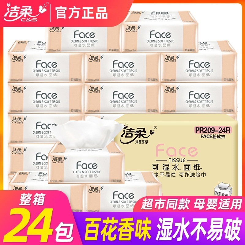洁柔抽纸百花香味大包3层100抽Face可湿水加厚面巾纸餐巾纸实惠装