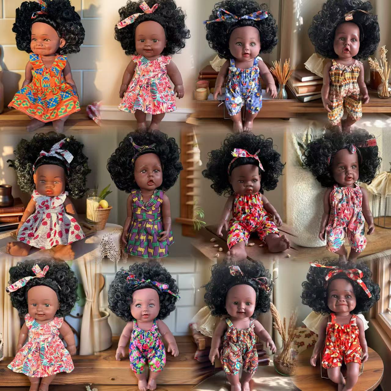 外贸12寸非洲黑人娃娃玩具洋娃娃仿真婴儿重生娃娃搪胶公仔玩偶