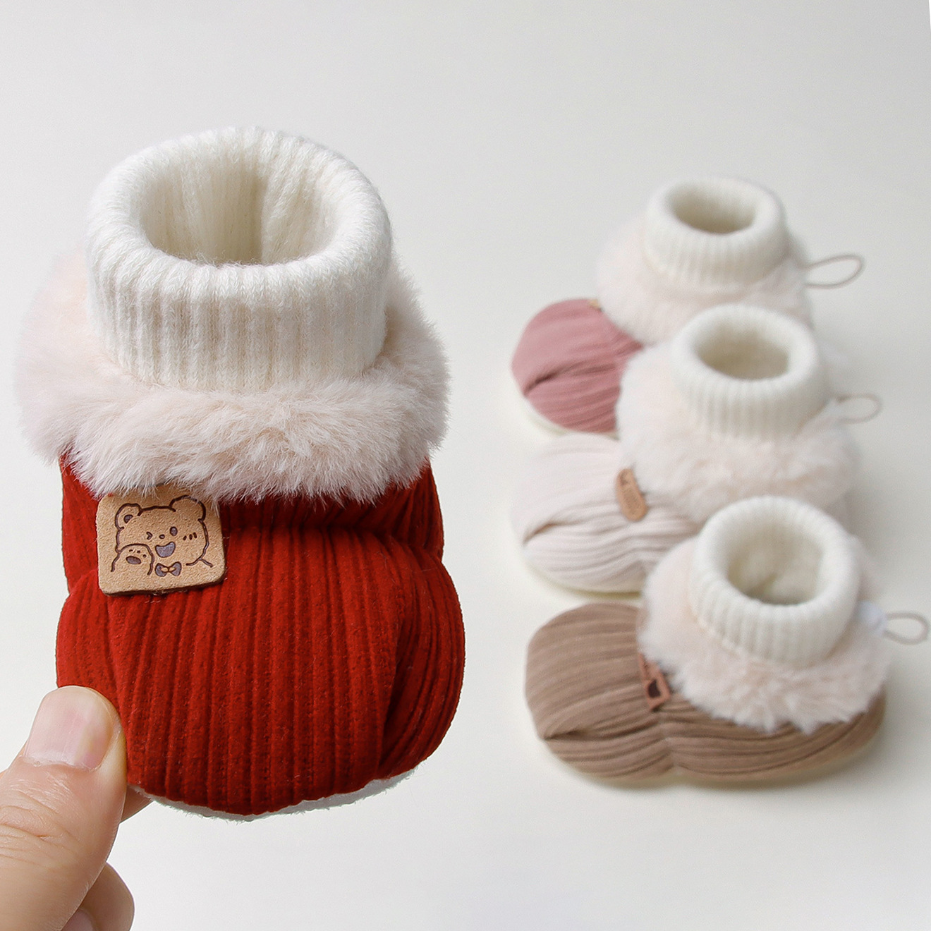婴儿鞋袜加绒冬季宝宝袜套0-3个月加绒保暖鞋新生儿新年宝宝鞋厚