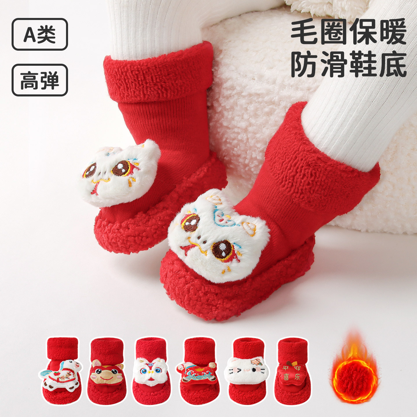 2023秋冬新品新生児赤ちゃん靴下日曜日百歳新年本命年赤ちゃん骨なし大赤靴下