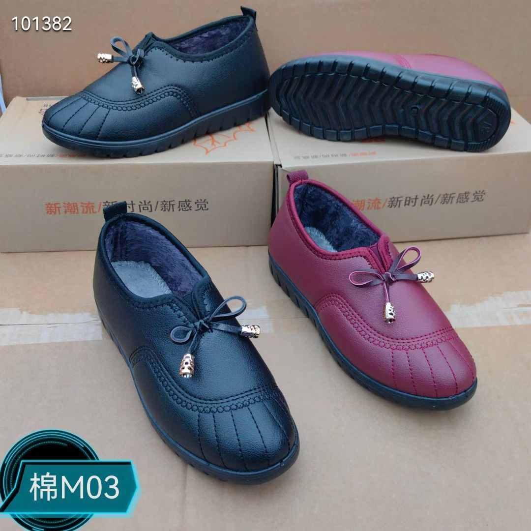 ベルベット保温秋冬新型古い北京レジャー刺繍皮革蝶ネクタイ花中高年母靴卸売り