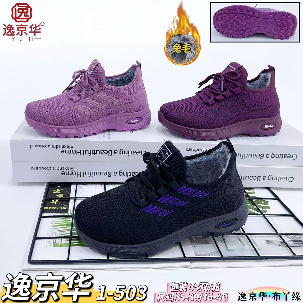 冬季新款跨境外贸批发休闲透气加绒飞织女士棉鞋现货跨境厂家直销