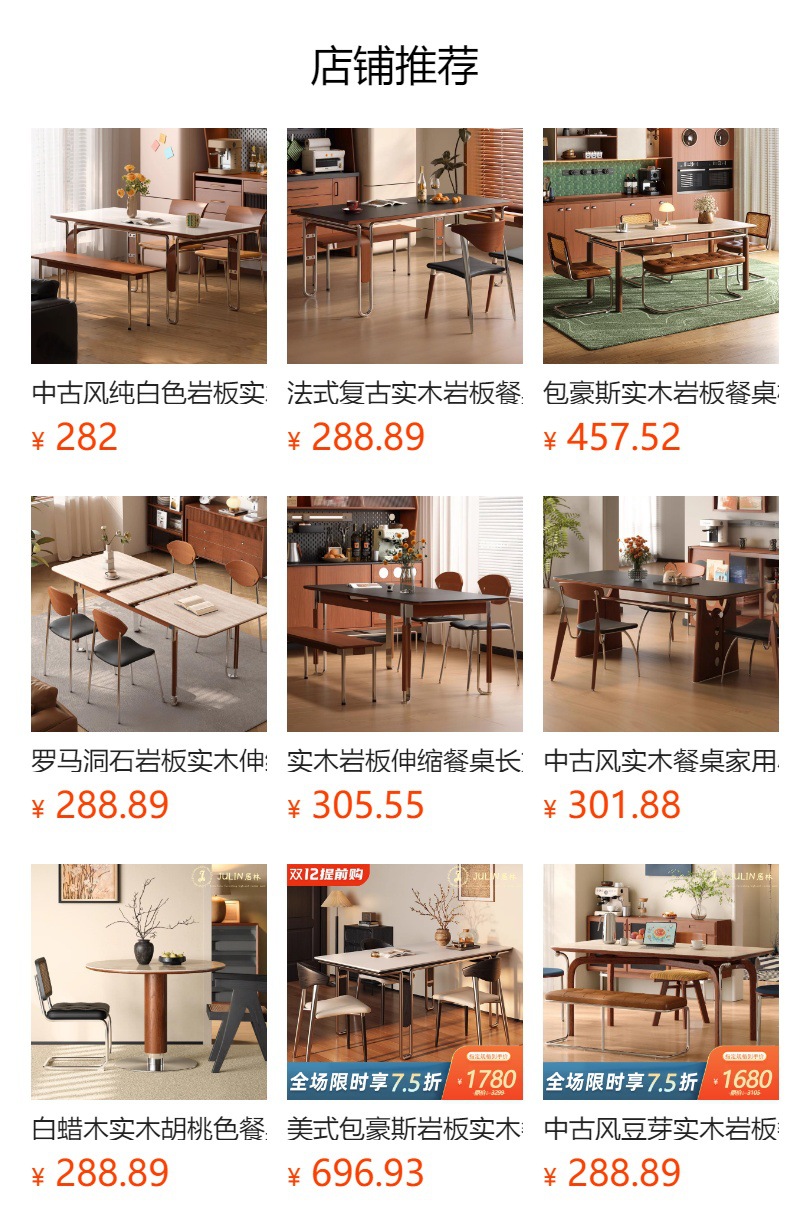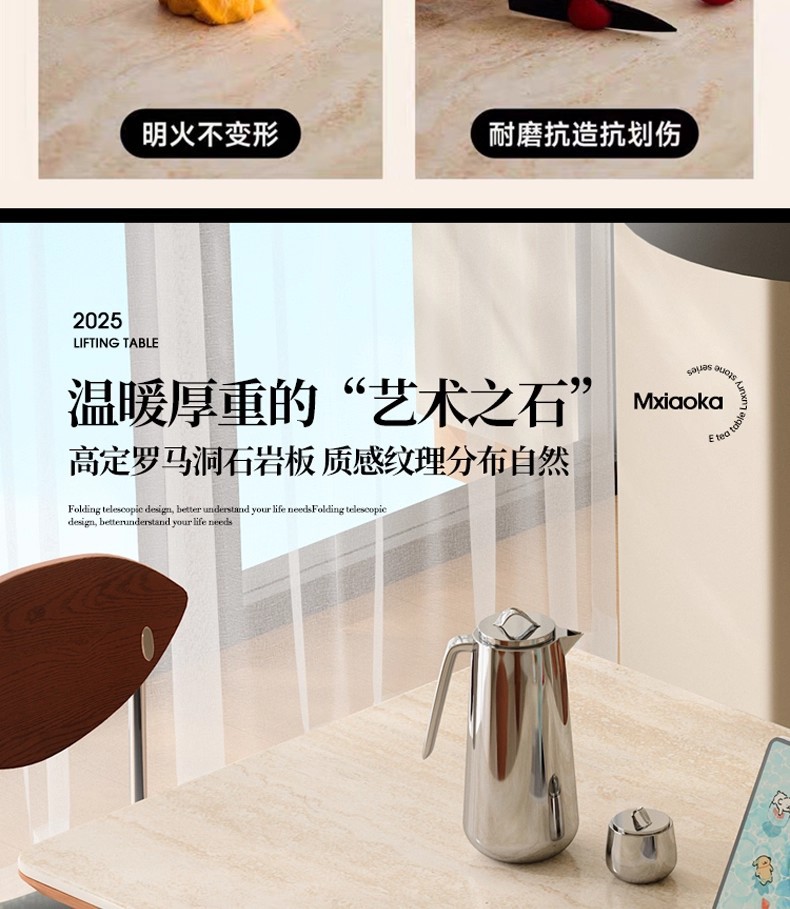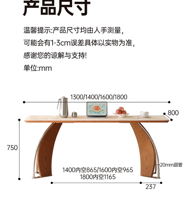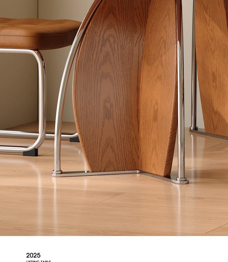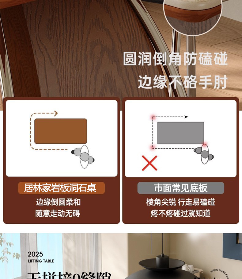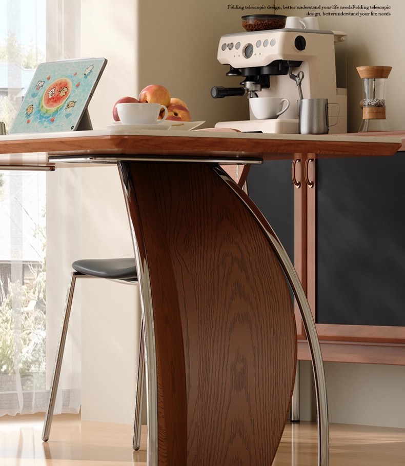 中古风实木岩板餐桌不锈钢复古饭桌家用小户型长方形洞石岩板餐桌