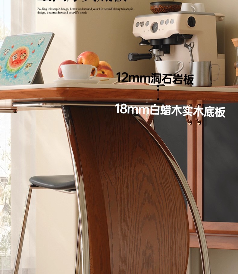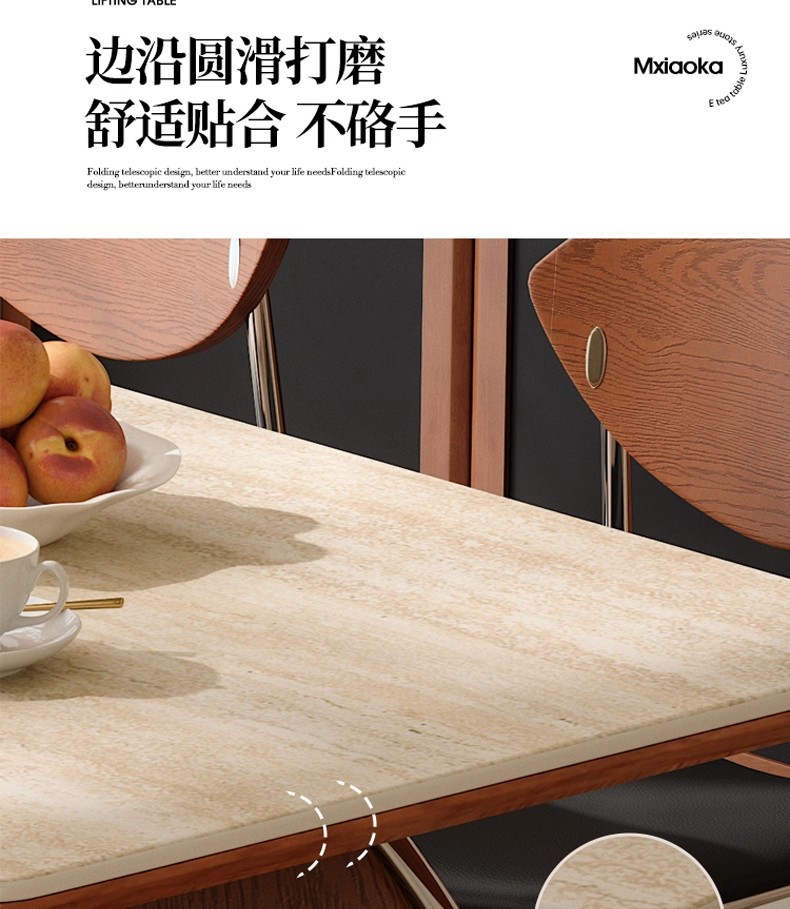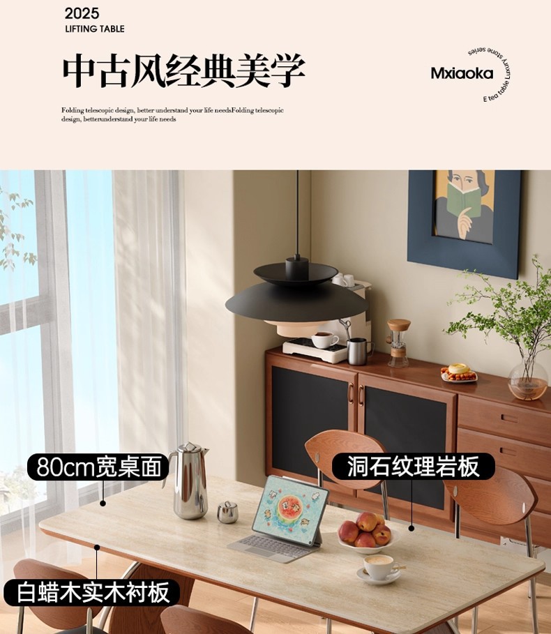 罗马洞石岩板实木伸缩餐桌长方形家用洞石白色中古风餐桌椅组合