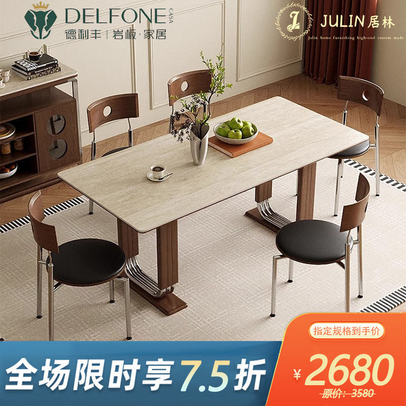 Delifeng スレート ダイニング テーブル ホールストーン バウハウス 小型アパート 2025 新しい無垢材長方形テーブル アンティークスタイル
