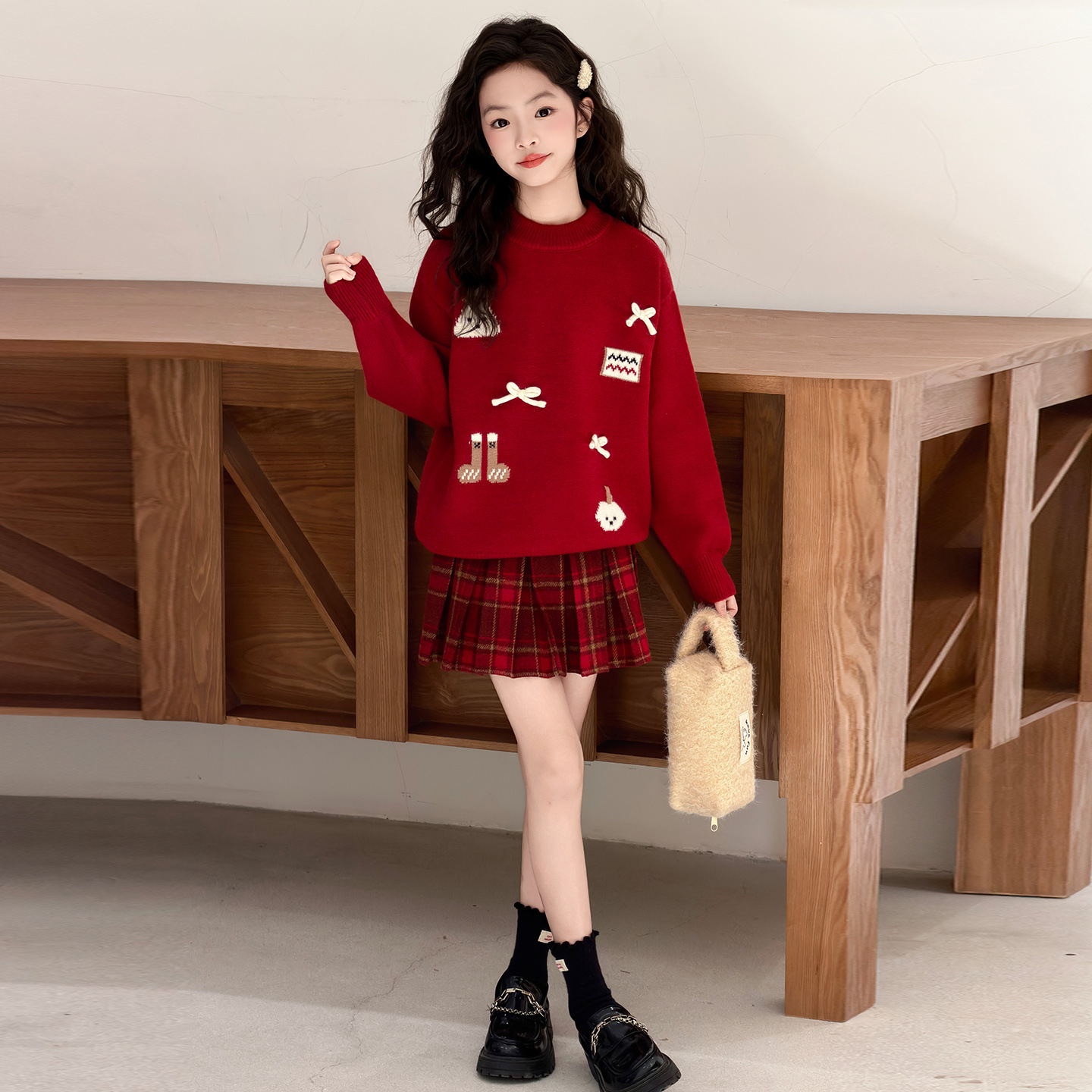 女童洋气红色新年款毛衣2025秋冬新款大童韩版加厚保暖针织毛线衣