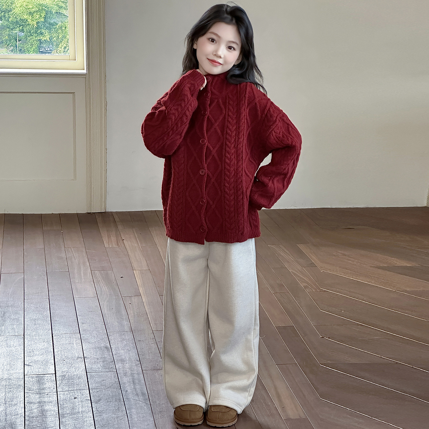 女童加厚毛衣开衫2025秋冬新款大童时髦洋气高品质针织毛线衣外套