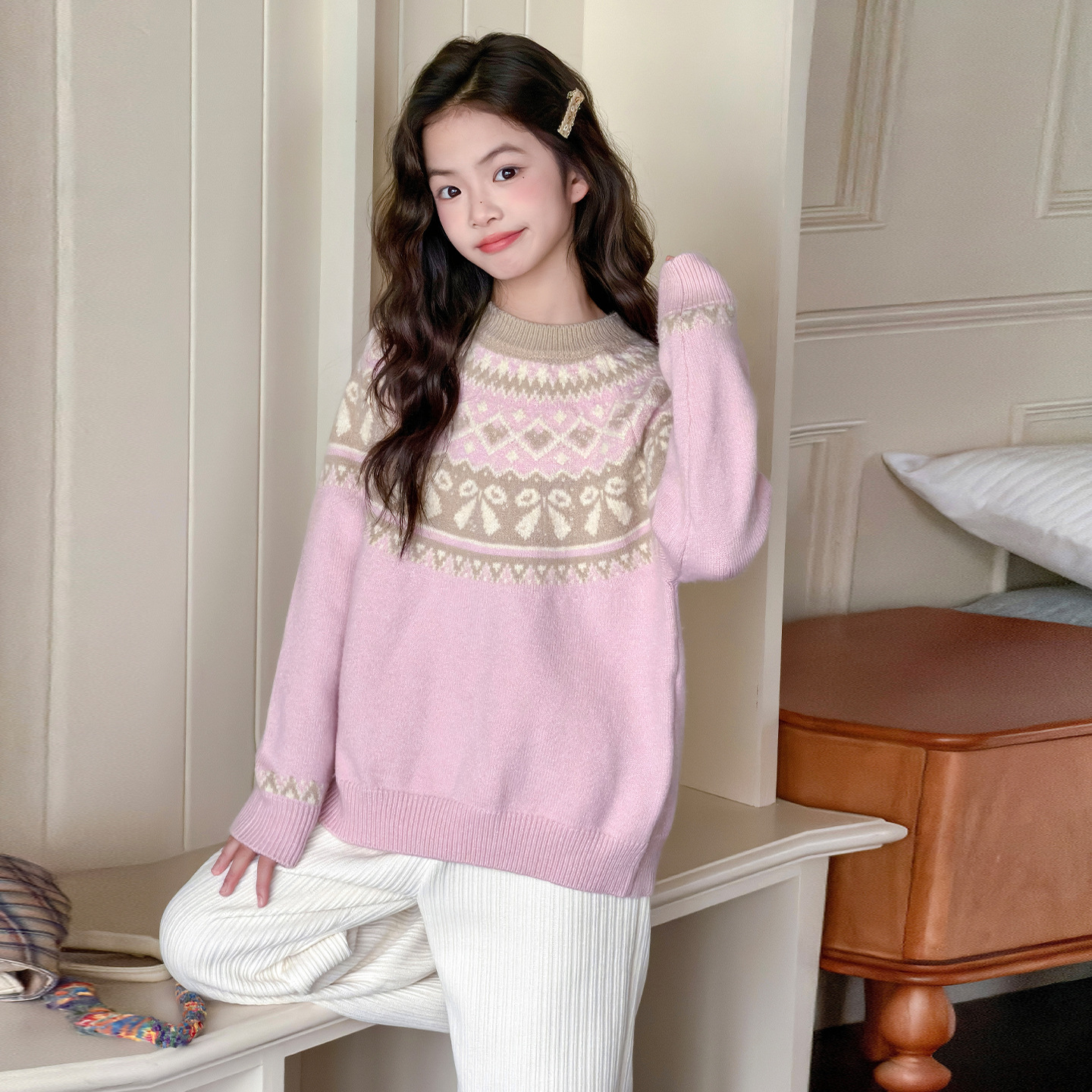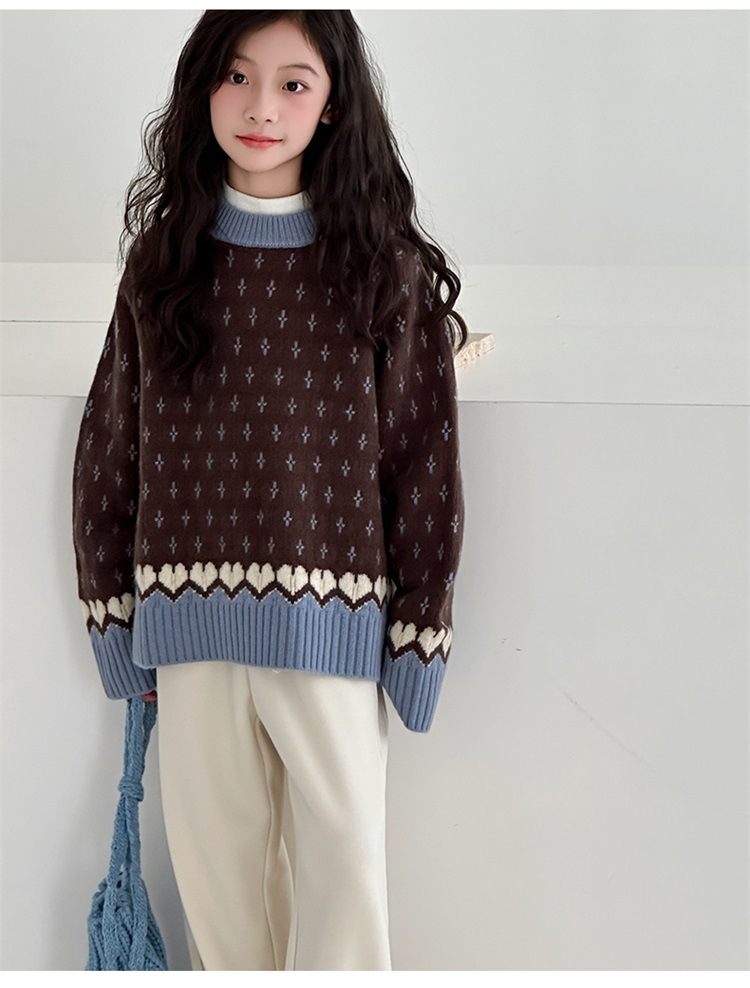 女童费尔岛毛衣2025秋冬新款大童韩版洋气休闲百搭长袖毛线衣上衣