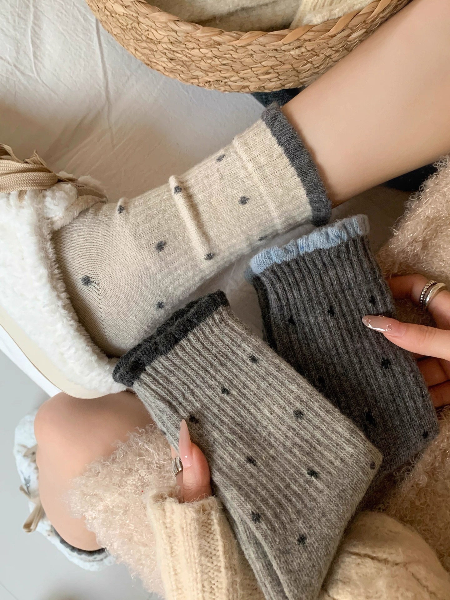 百搭波点袜诸暨袜子女中筒袜保暖韩系堆堆袜ins潮流休闲长筒女袜