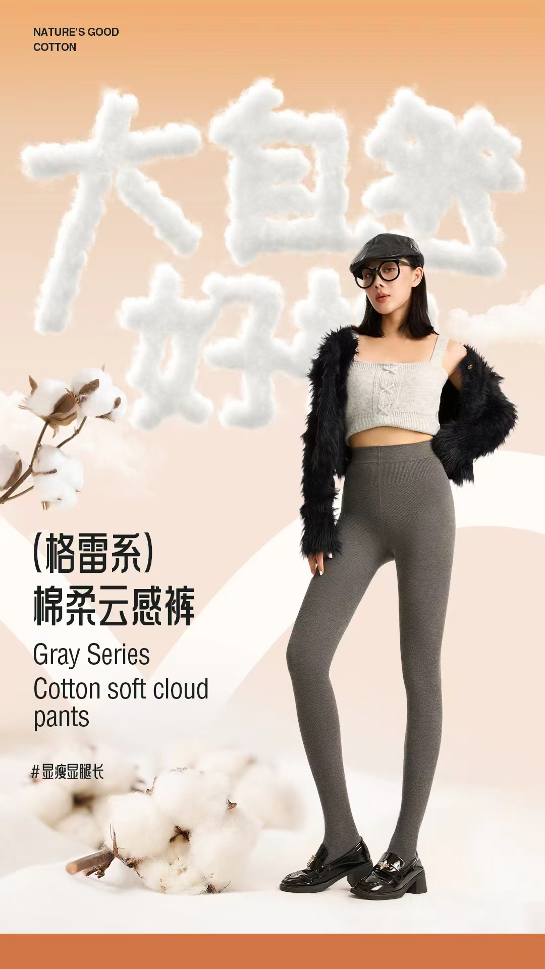 晨尔316棉柔云感修身显瘦压力袜棉春秋冬季加绒打底裤棉质