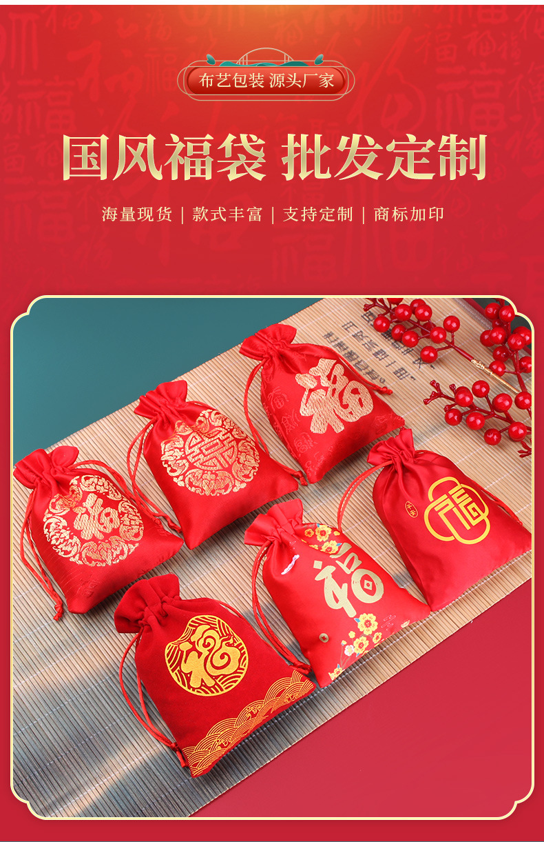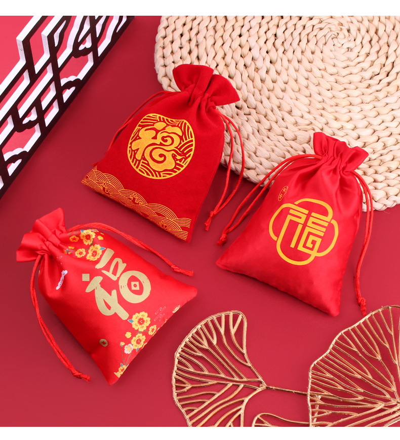 红色福袋春节喜庆福袋用品平安创意礼品袋首饰袋结婚糖果袋束口袋