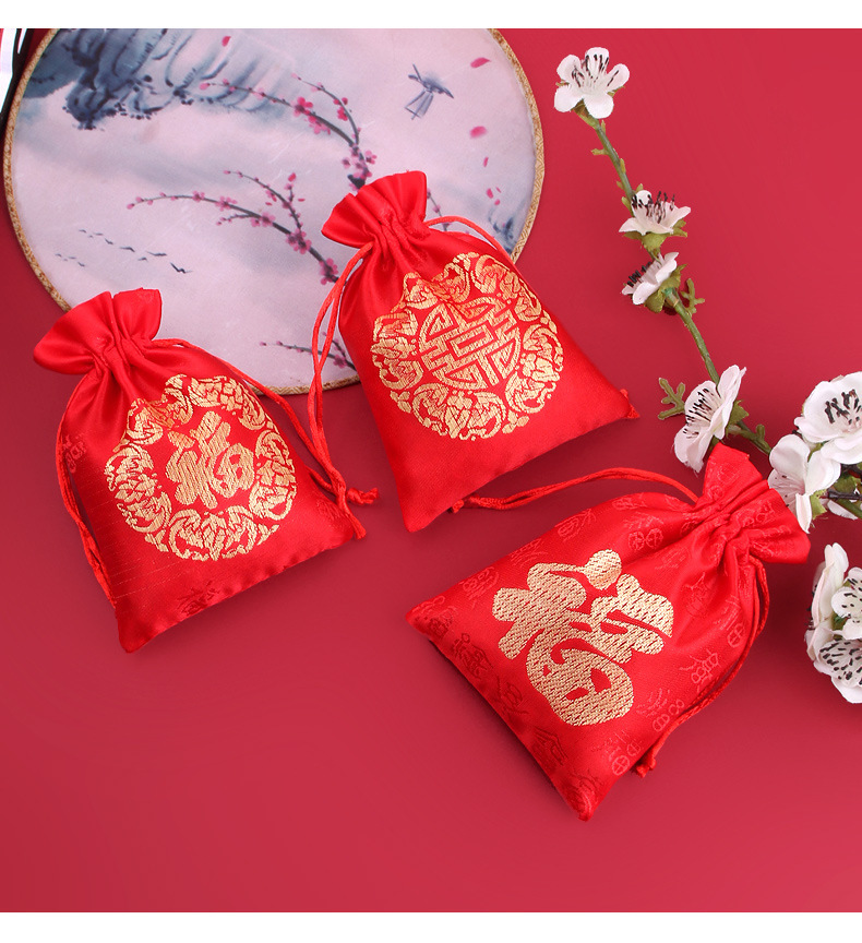 中国風ジュエリー包装小福袋卸売錦織赤色福袋巾着結婚式のお菓子袋福袋