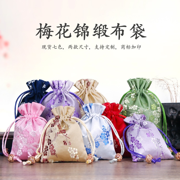 サテンの布の袋の結婚式のキャンディーの袋の贈り物の袋の古韻の梅の花の荷の袋のロープの収納袋の置物の袋の布のバッグの袋