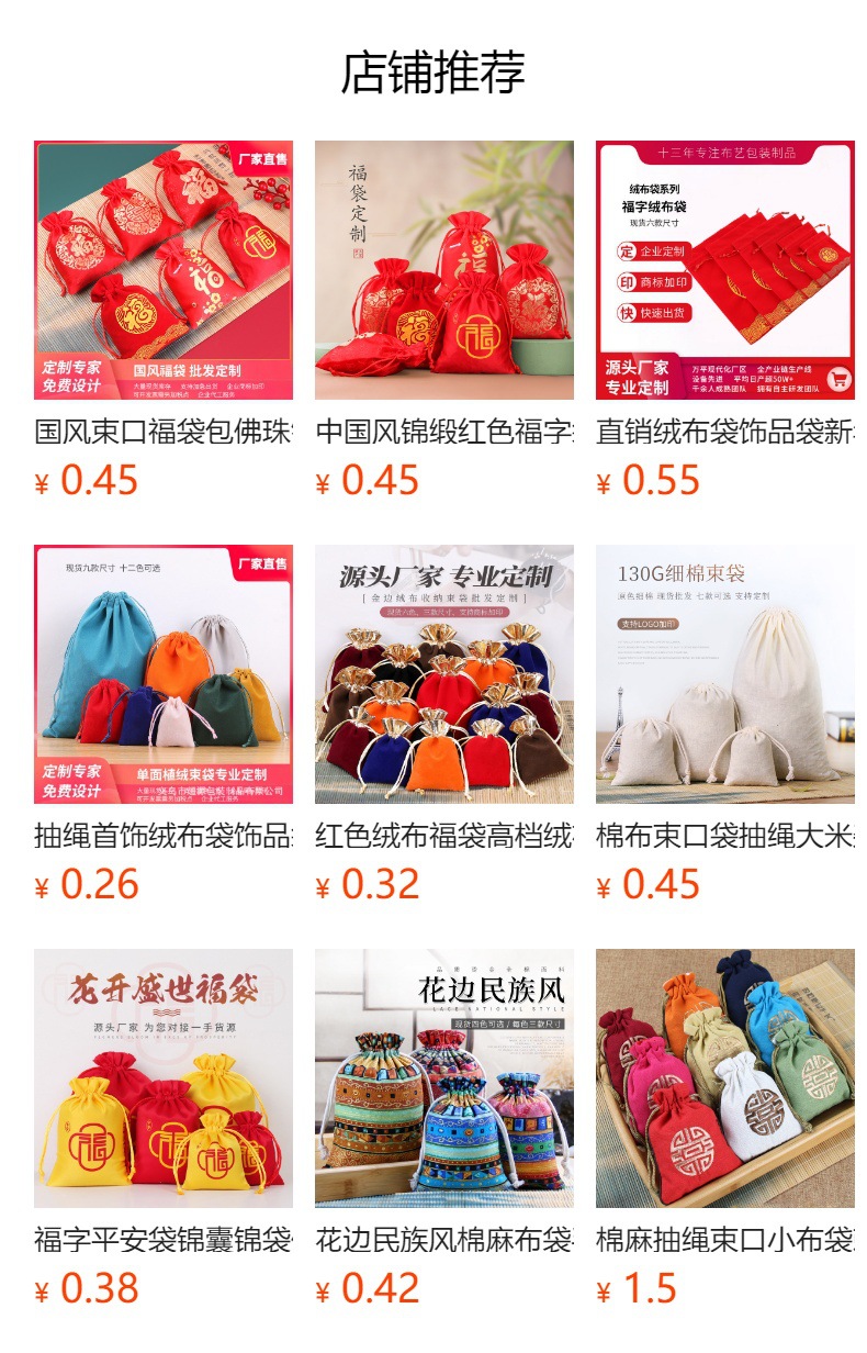 现货绒布袋饰品袋新年福袋百福压岁礼品袋束口抽绳袋红包福字锦囊
