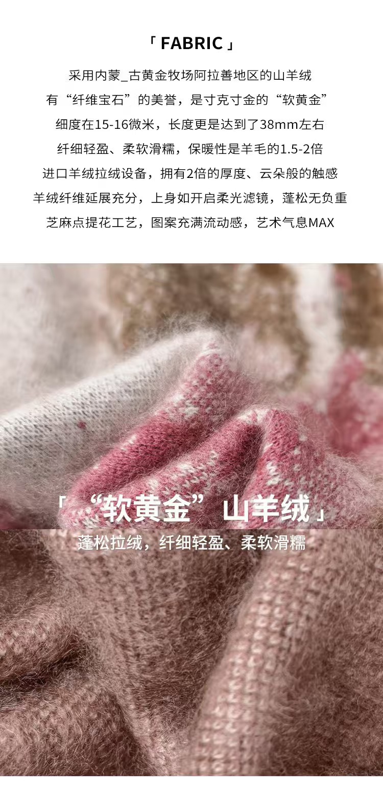 花朵提花山羊绒衫女圆领羊绒毛衣宽松上衣秋冬季针织打底衫厚内搭