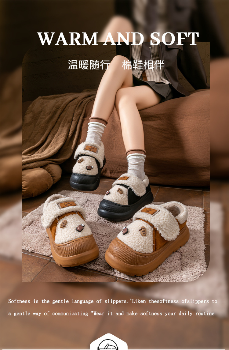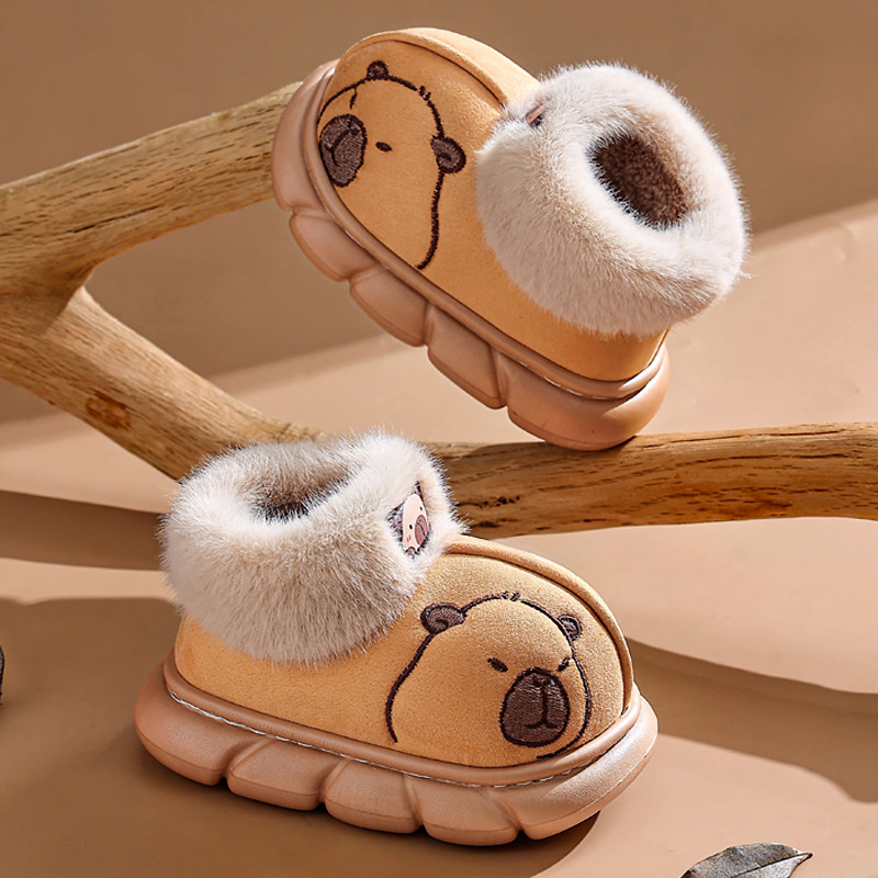 卡皮巴拉冬季宝宝棉鞋男女童室内防滑保暖加绒小孩包跟儿童棉拖鞋