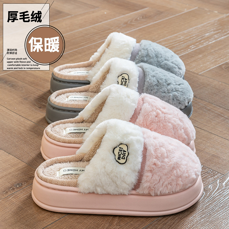 冬季厚底棉拖鞋女居家防滑保暖2025新款式家居加厚毛毛绒拖鞋批发