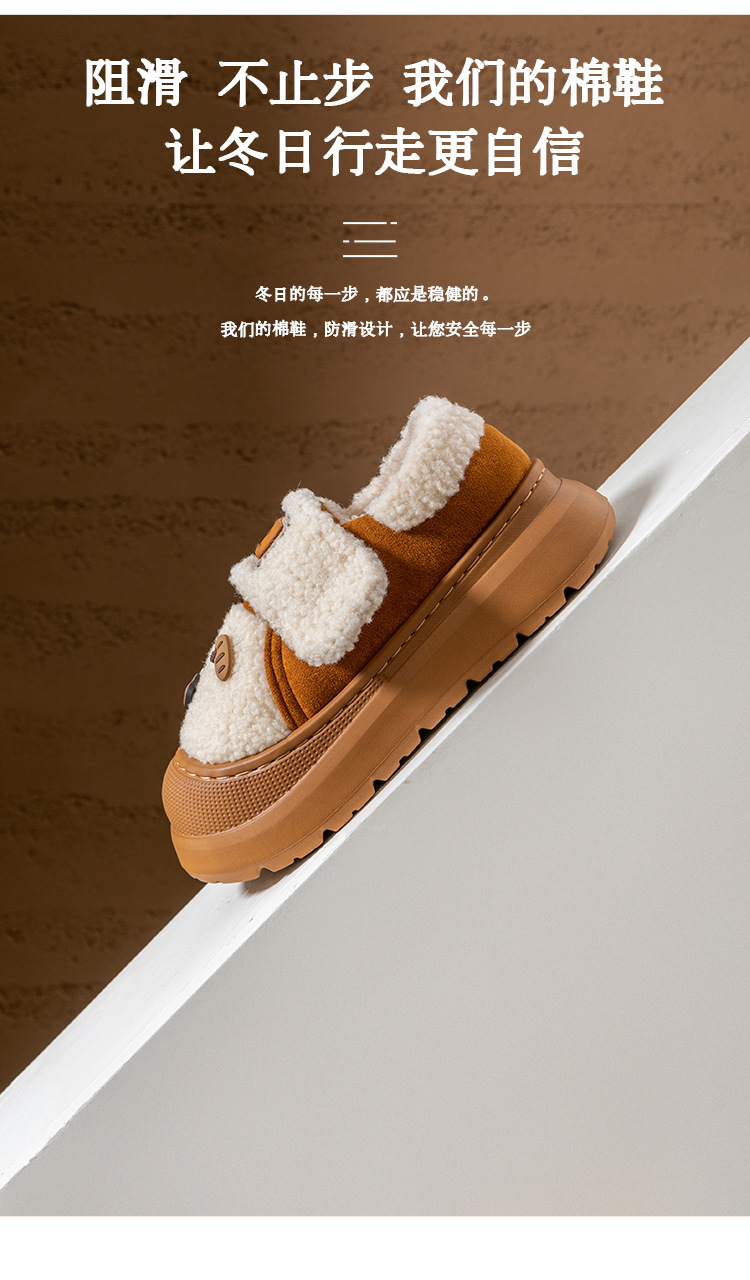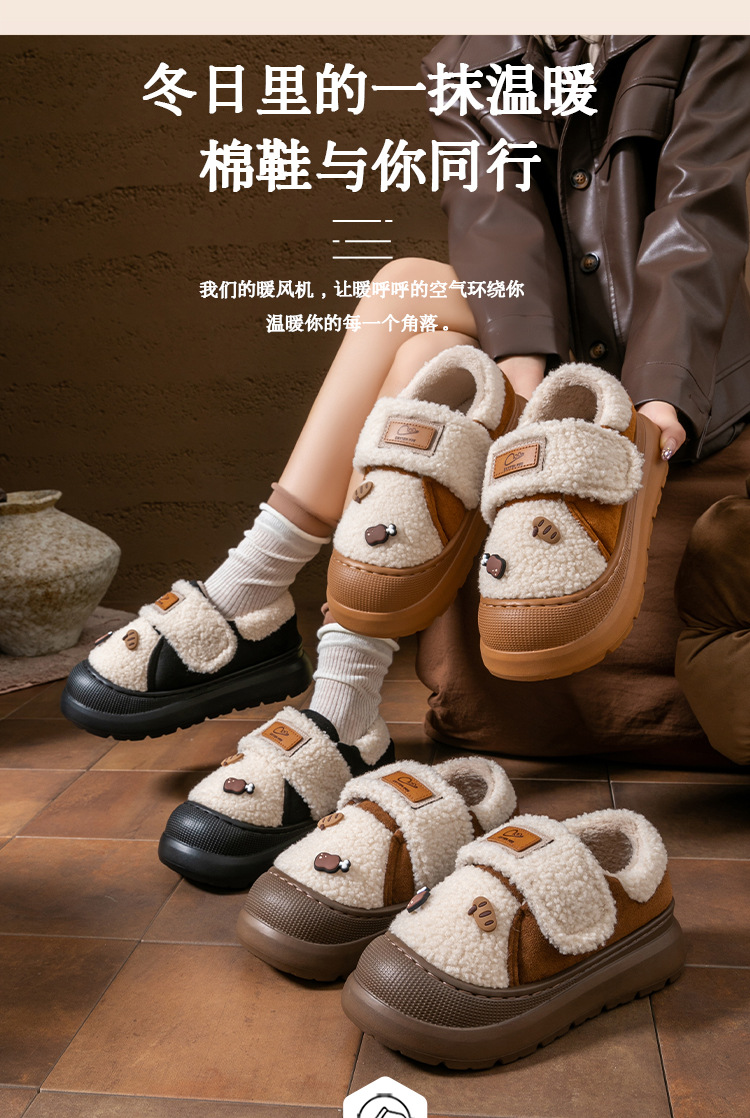 新款魔术贴包跟棉拖鞋女秋冬季防滑保暖时尚外穿加绒月子棉鞋厚底
