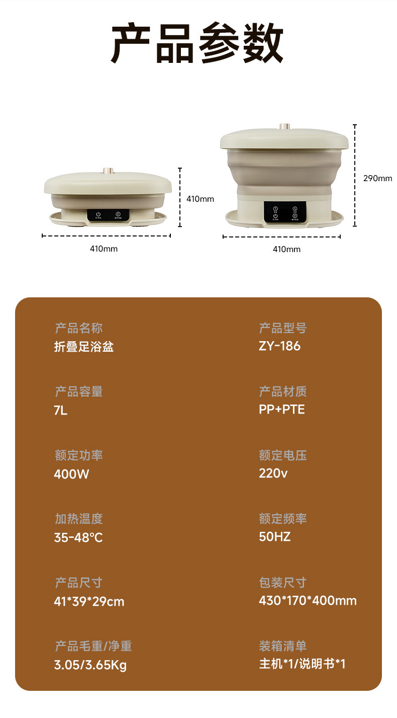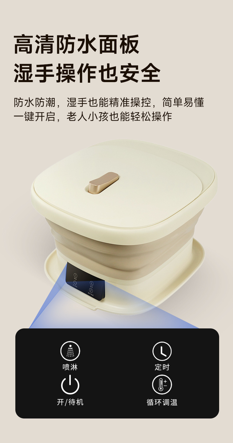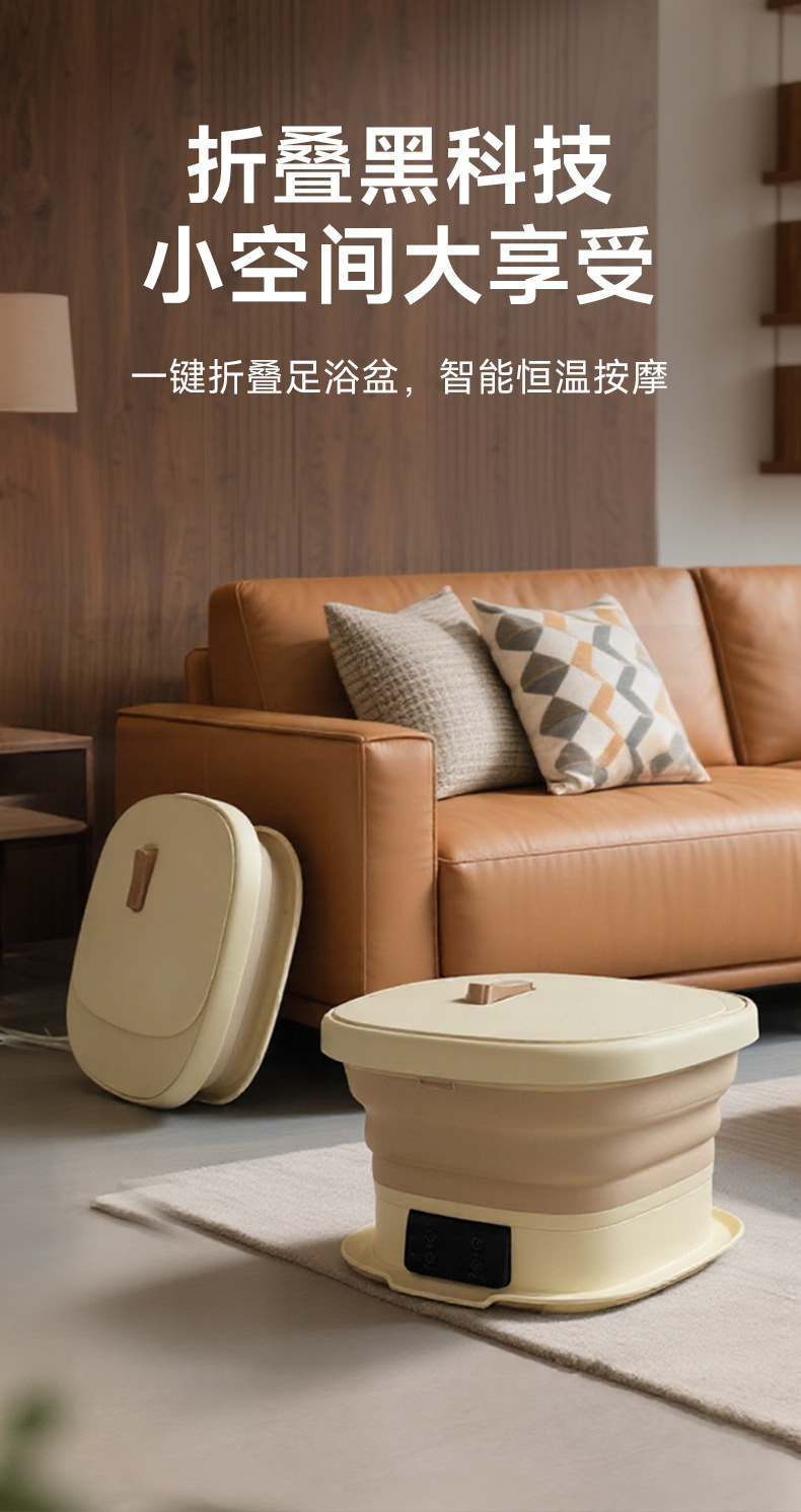 新款骆驼折叠足浴盆加热泡脚桶家用便携式恒温按摩足浴盆礼品批发