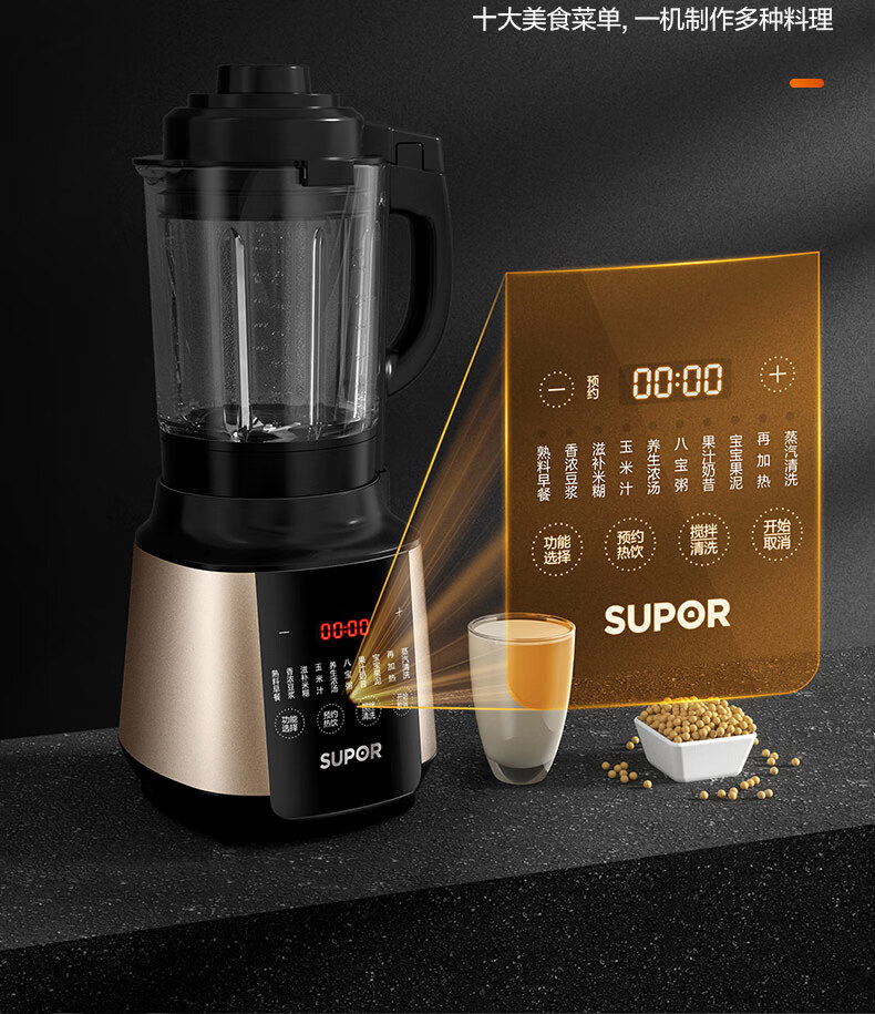 苏泊尔破壁机豆浆机1.2升全自动免过滤加热榨汁辅食搅拌机SPJ001S
