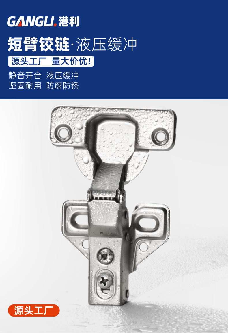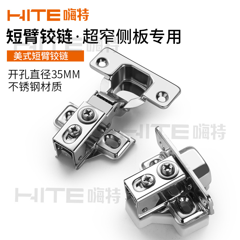 家具柜门短臂铰链衣柜美式短身液压门铰链阻尼静音窄侧板烟斗合页