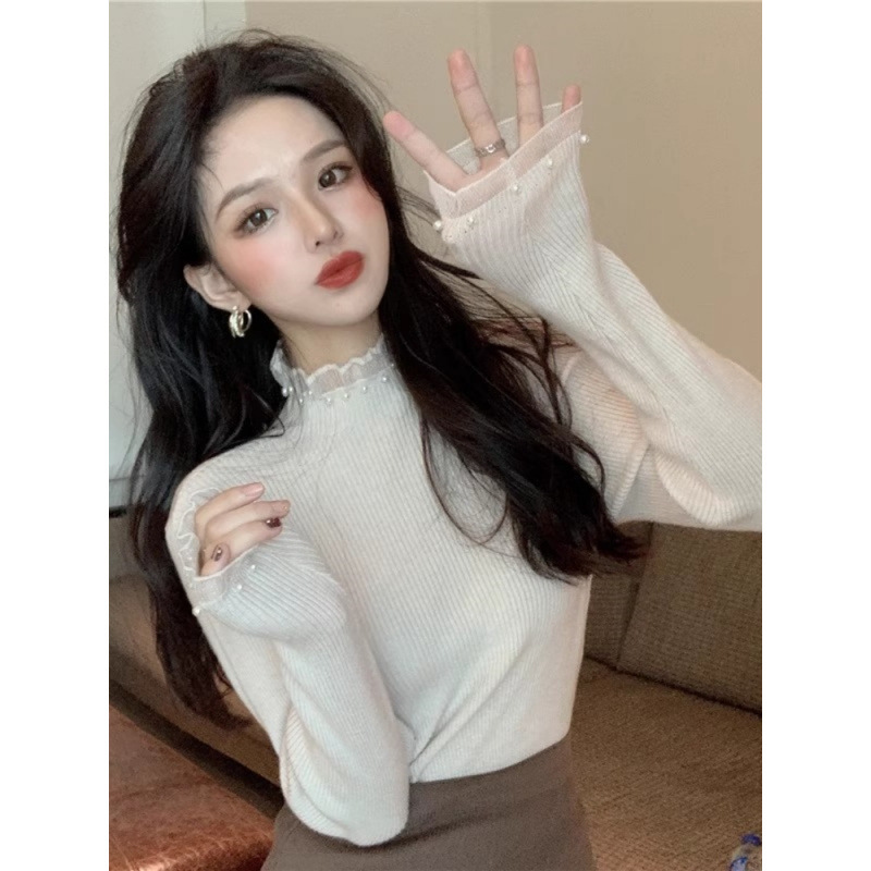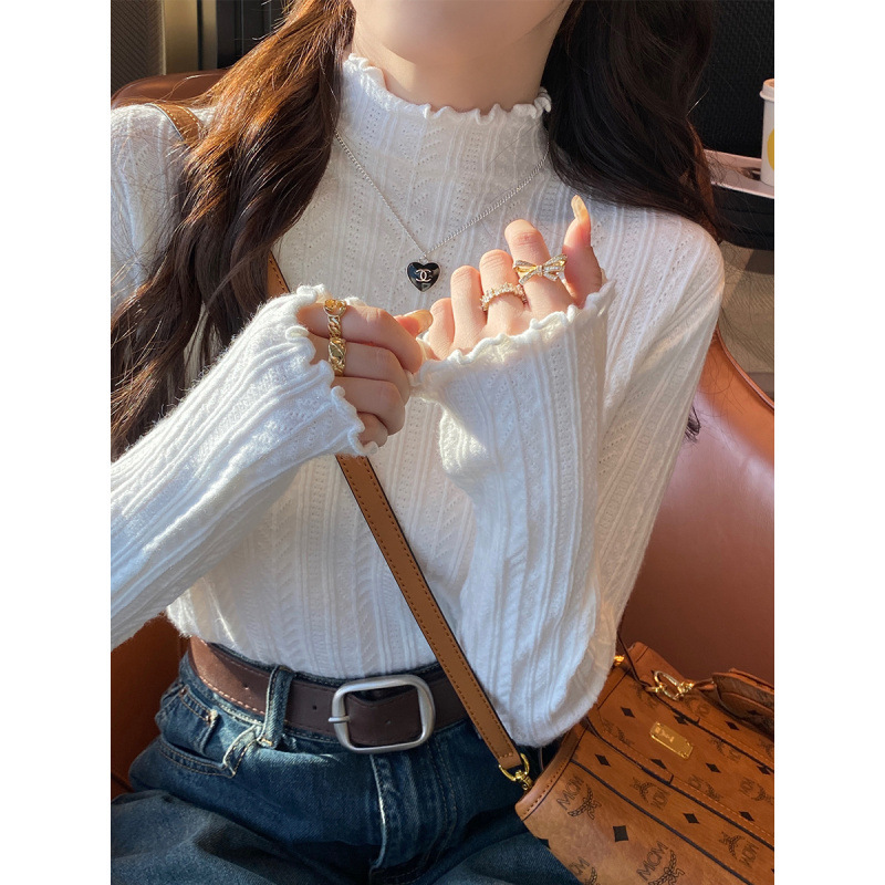 白色打底衫女秋冬季内搭2025新款半高领木耳边针织中领高级感毛衣