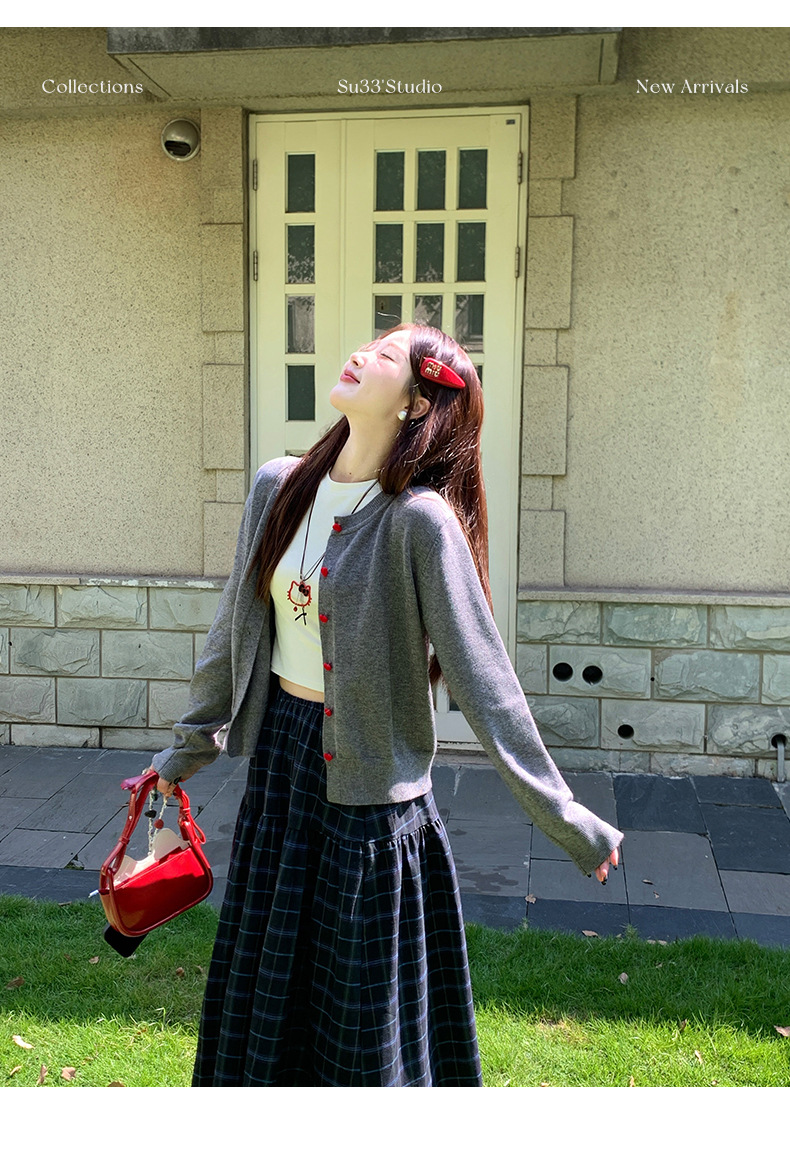 グレーのカーディガン女性2025新作ニットコート春のショートコート