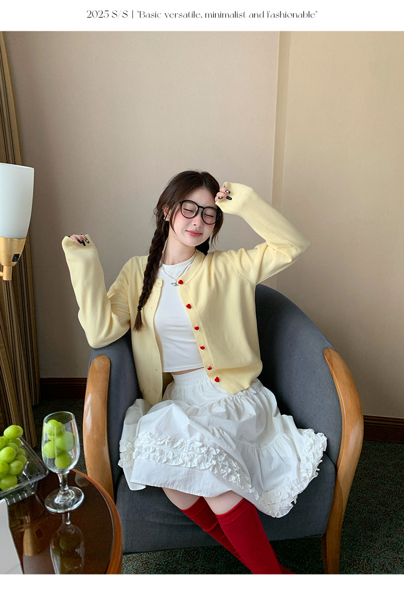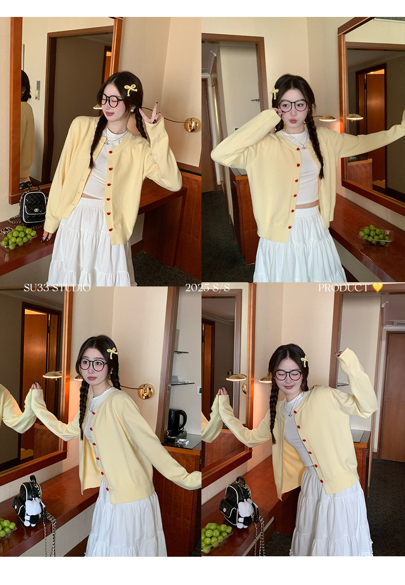 ニットのカーディガンとサスペンダーのスカートの外は女性の夏の新型の2025薄いニットの黄色の日焼け止めの上着に乗ります。