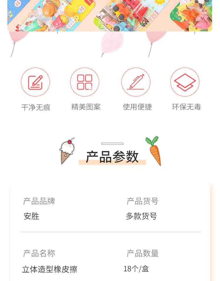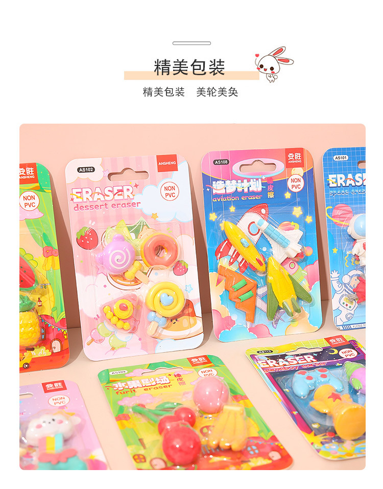 规格 太空漫游橡皮AS101(1卡),甜品派对橡皮AS102(1卡),甜甜仙境橡皮AS103(1卡),恐龙乐园橡皮AS104(1卡),粉红宝藏橡皮AS105(1卡),美味餐厅橡皮AS106(1卡),夏日海洋橡皮AS107(1卡),造梦计划橡皮AS108(1卡),水果剧场橡皮AS109(1卡),工地能手橡皮AS110(1卡),萌猫聚会橡皮AS111(1卡),圣诞快乐橡皮AS112(1卡),电子游戏橡皮AS113(1卡),童心乐园橡皮AS114(1卡),暖阳花房橡皮AS115(1卡),彩虹节奏橡皮AS116(1卡)