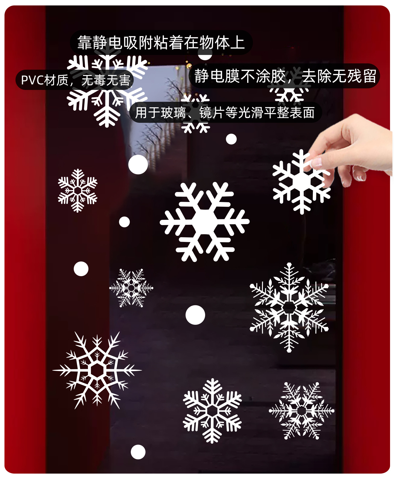 圣诞贴纸雪花窗贴圣诞节装饰玻璃贴白色雪花片静电贴冬季雪景门贴