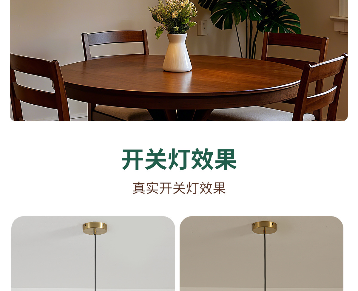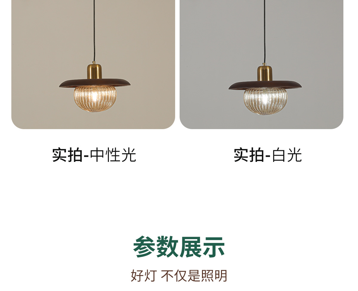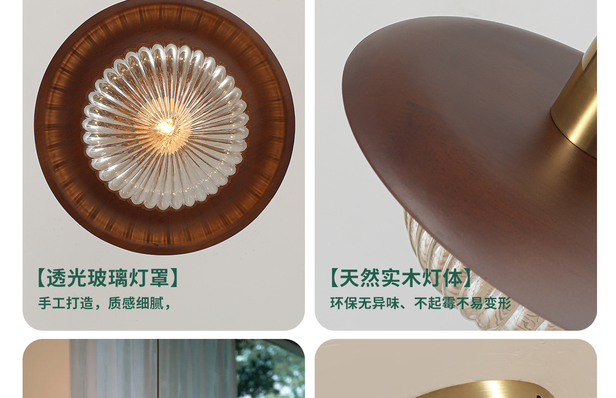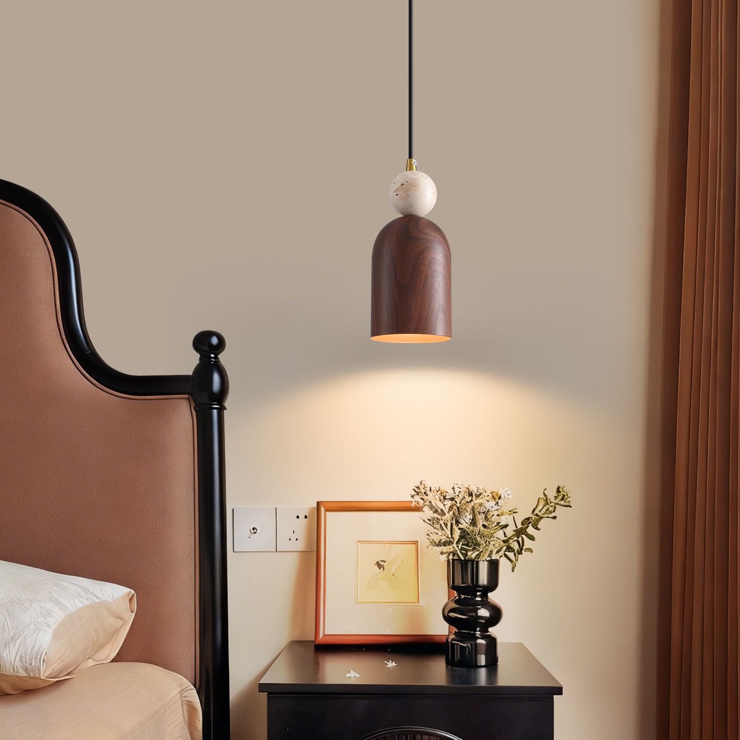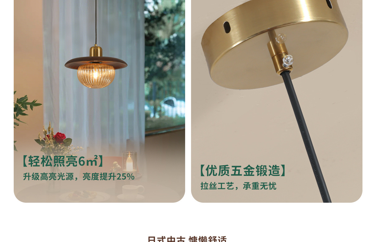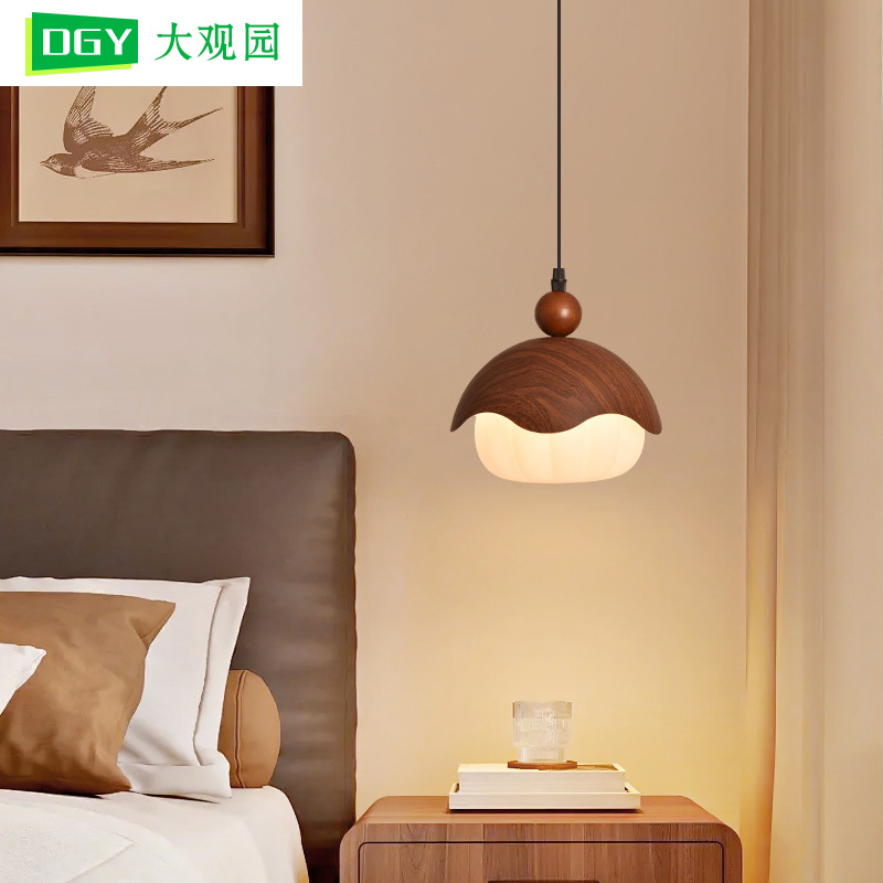 中古风卧室床头小吊灯法式复古实木胡桃木色全光谱护眼吊线灯125L