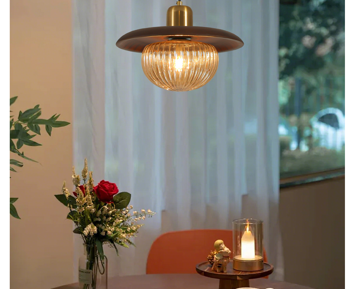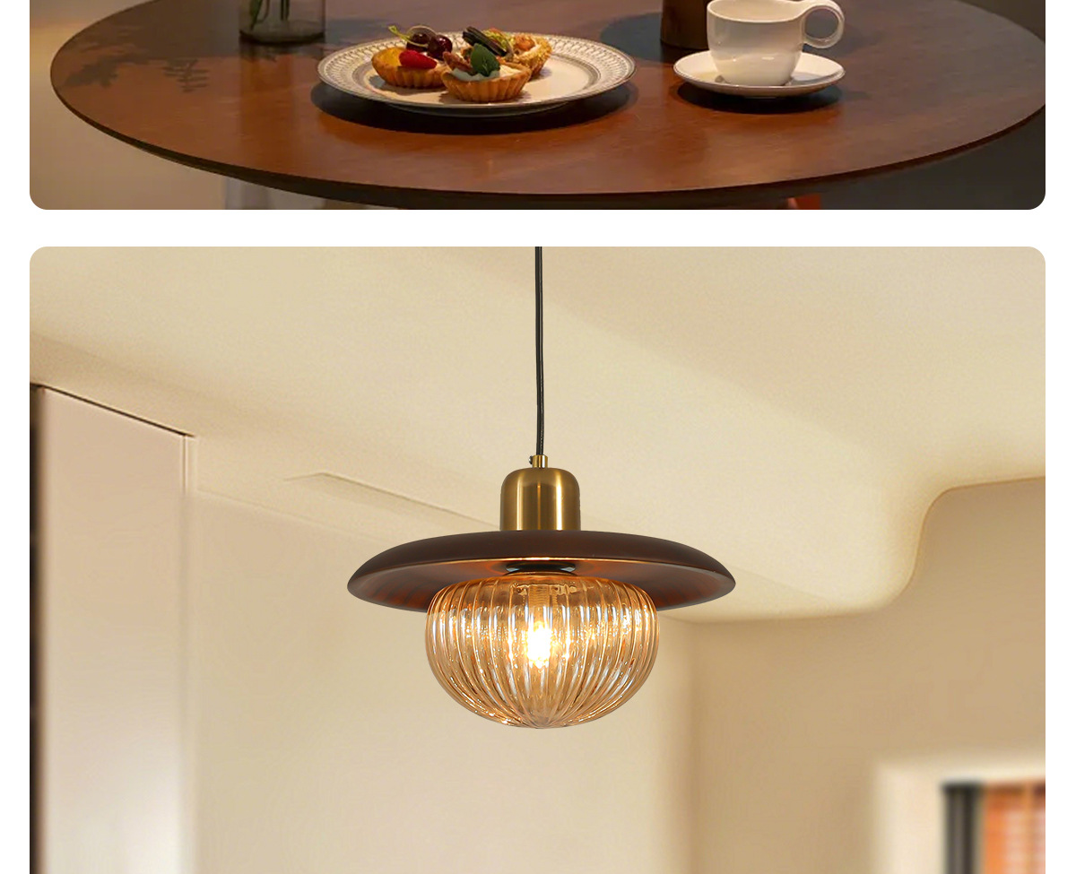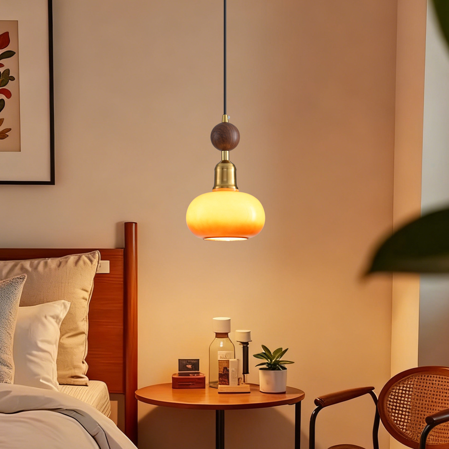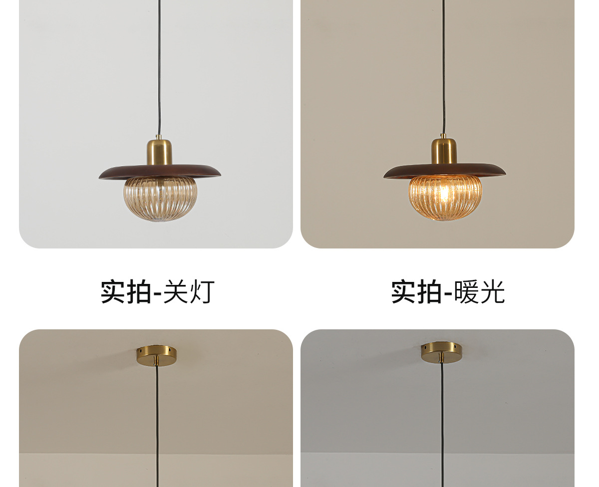 法式中古风卧室床头吊灯胡桃木色复古吧台餐厅灯玄关南瓜吊灯L335