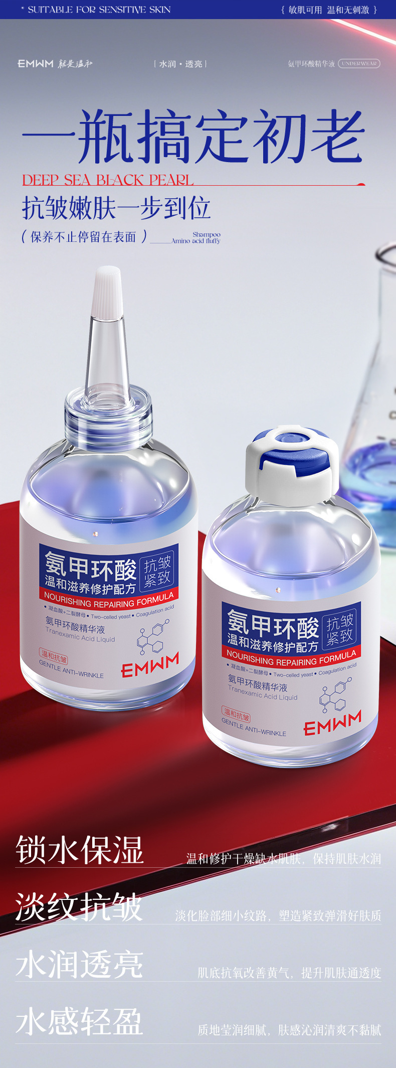 EMWM氨甲环酸精华液补水提亮淡化细纹紧致保湿面部精华原液批发