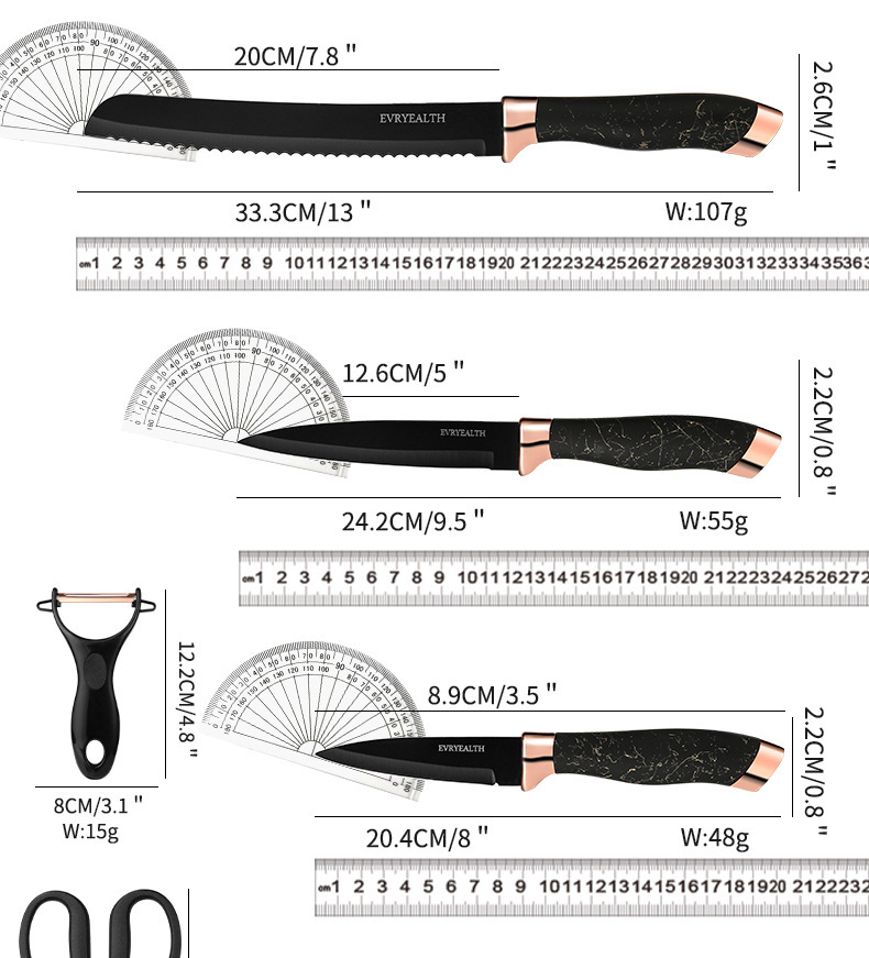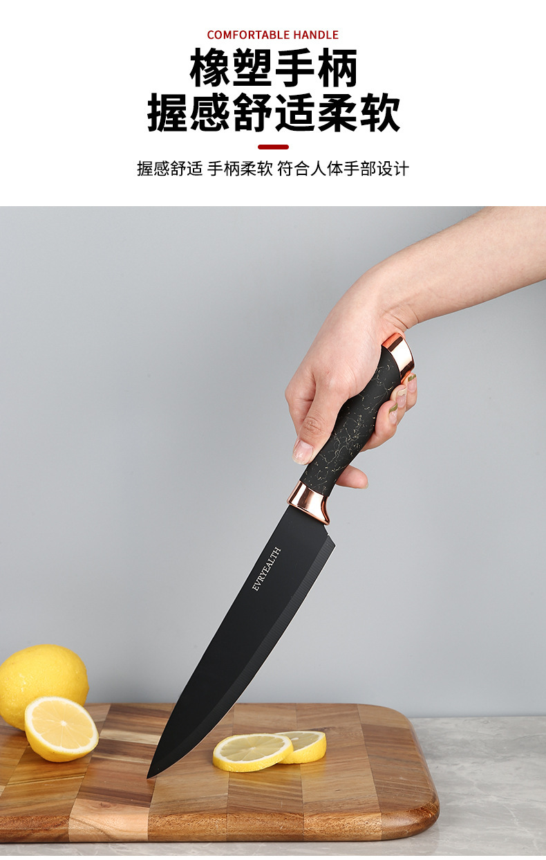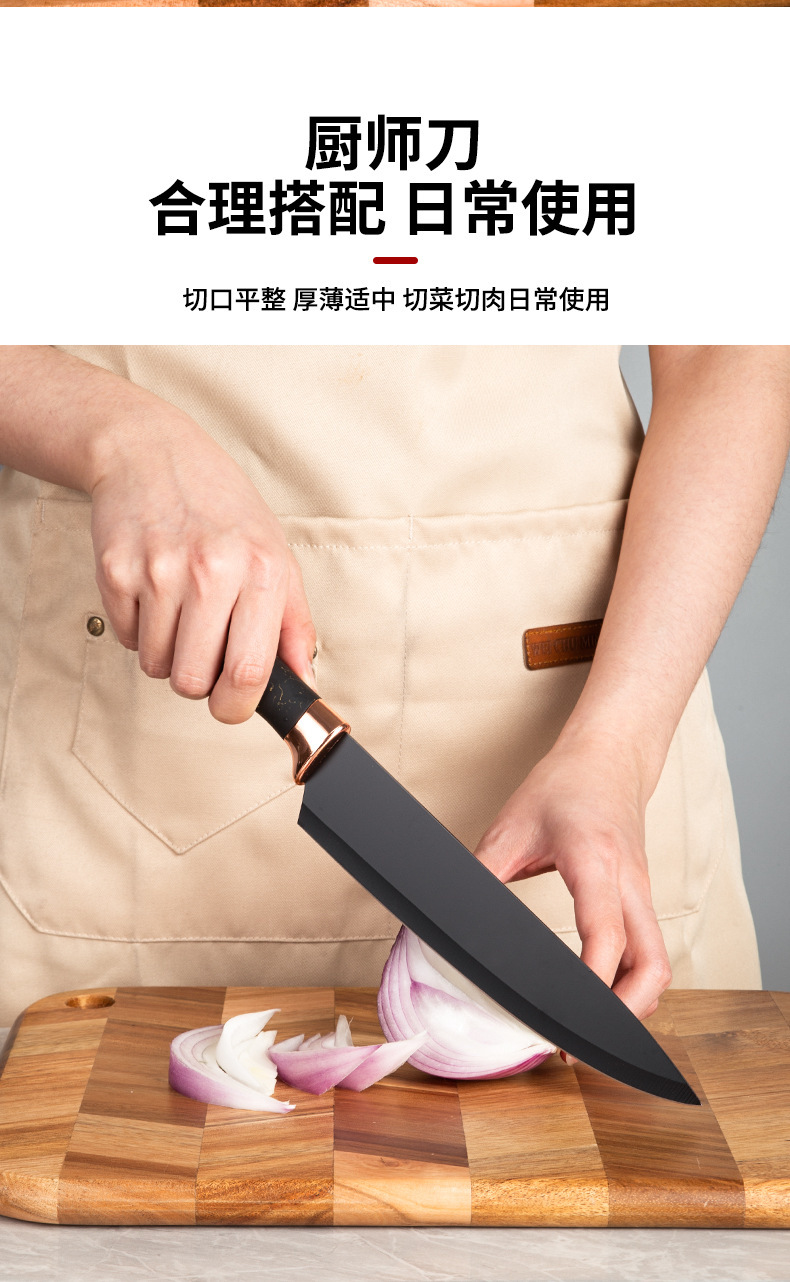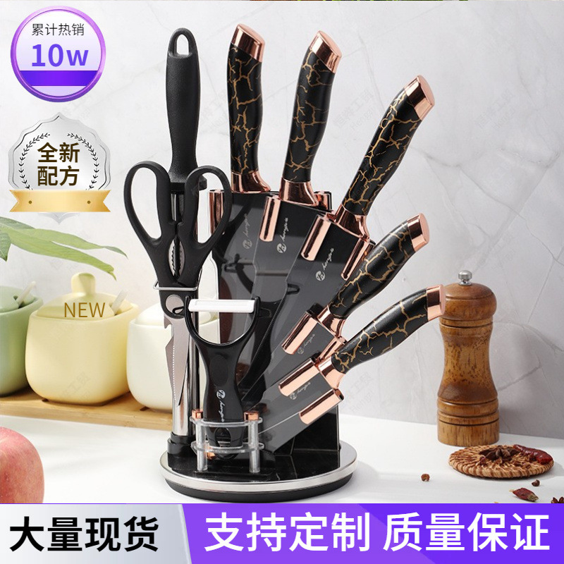 不锈钢喷漆刀具套装收纳架玫瑰金九件套大理石纹家用套刀具组合