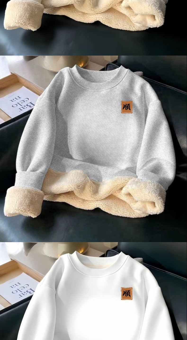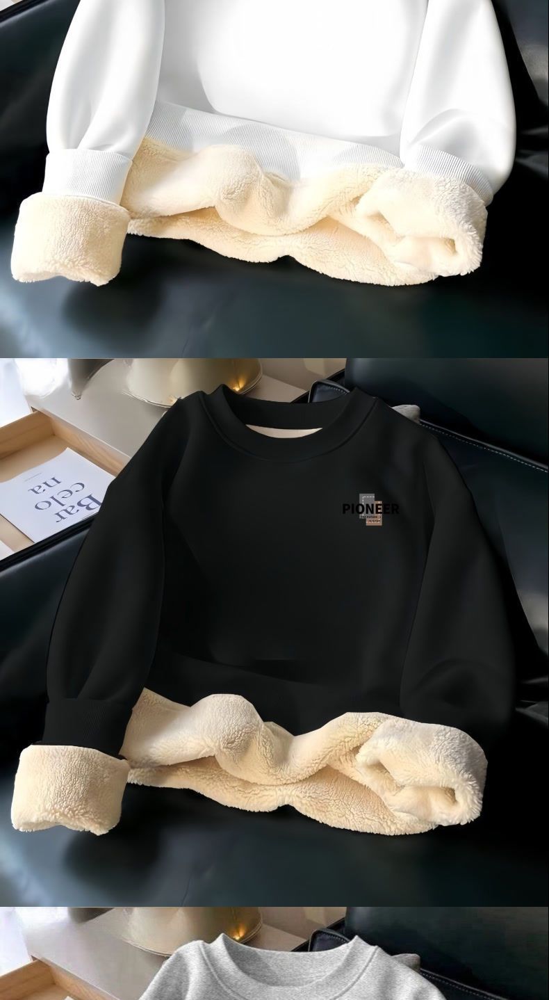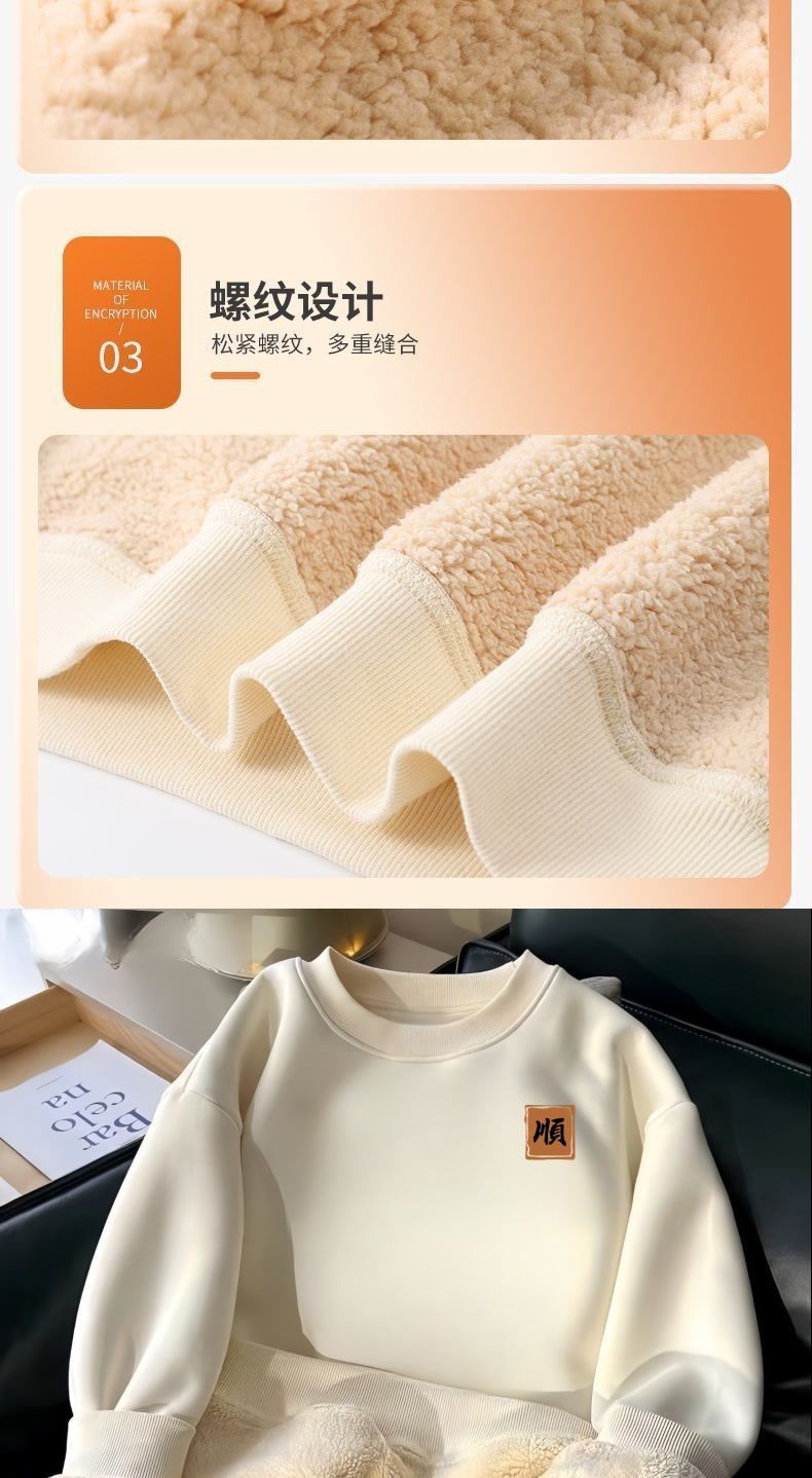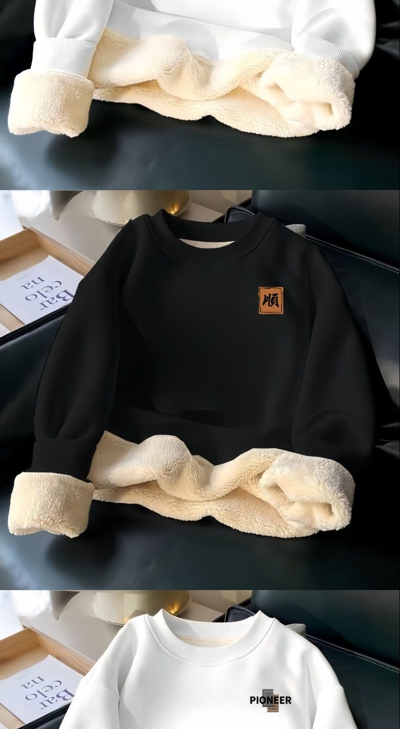 羊羔绒保暖卫衣冬季男加绒加厚圆领无帽简约时尚字母百搭青年上衣