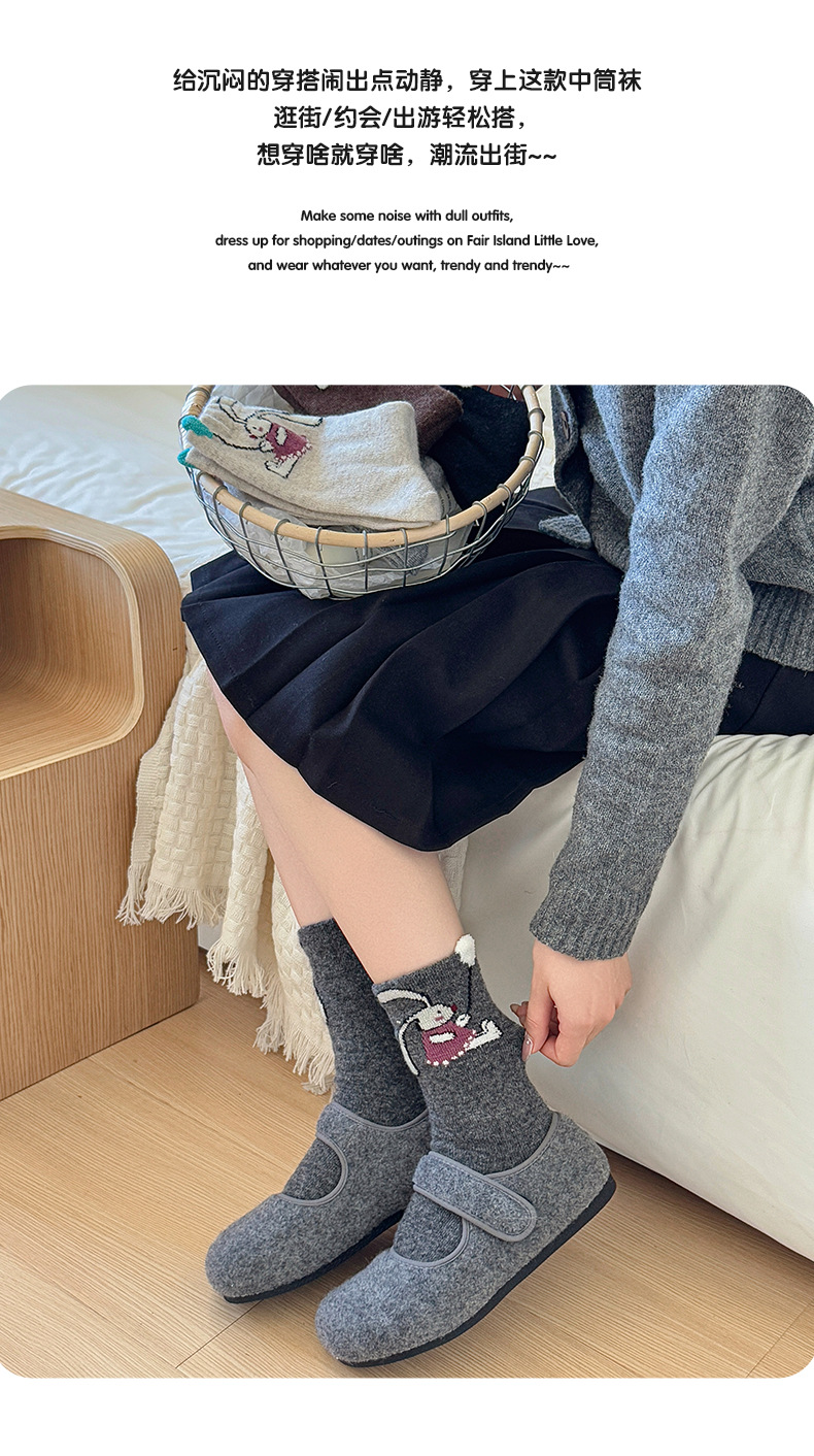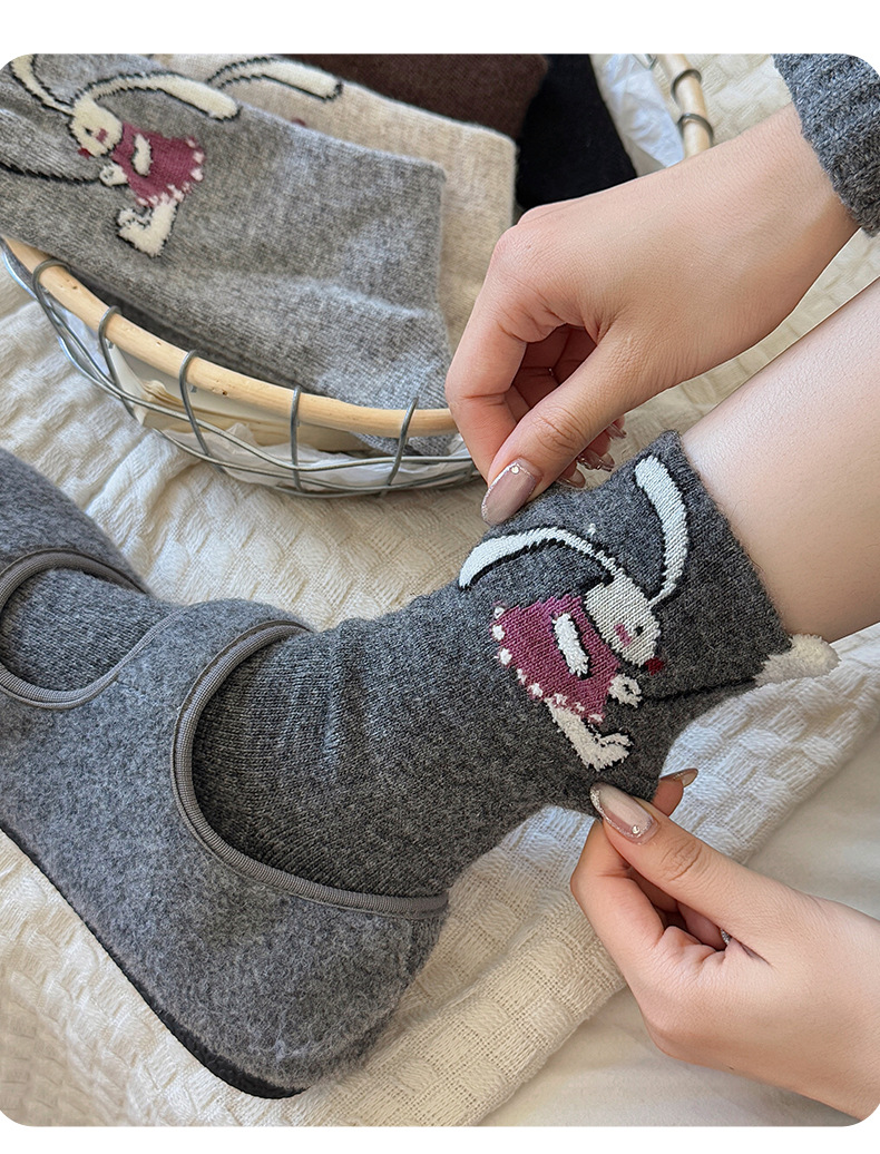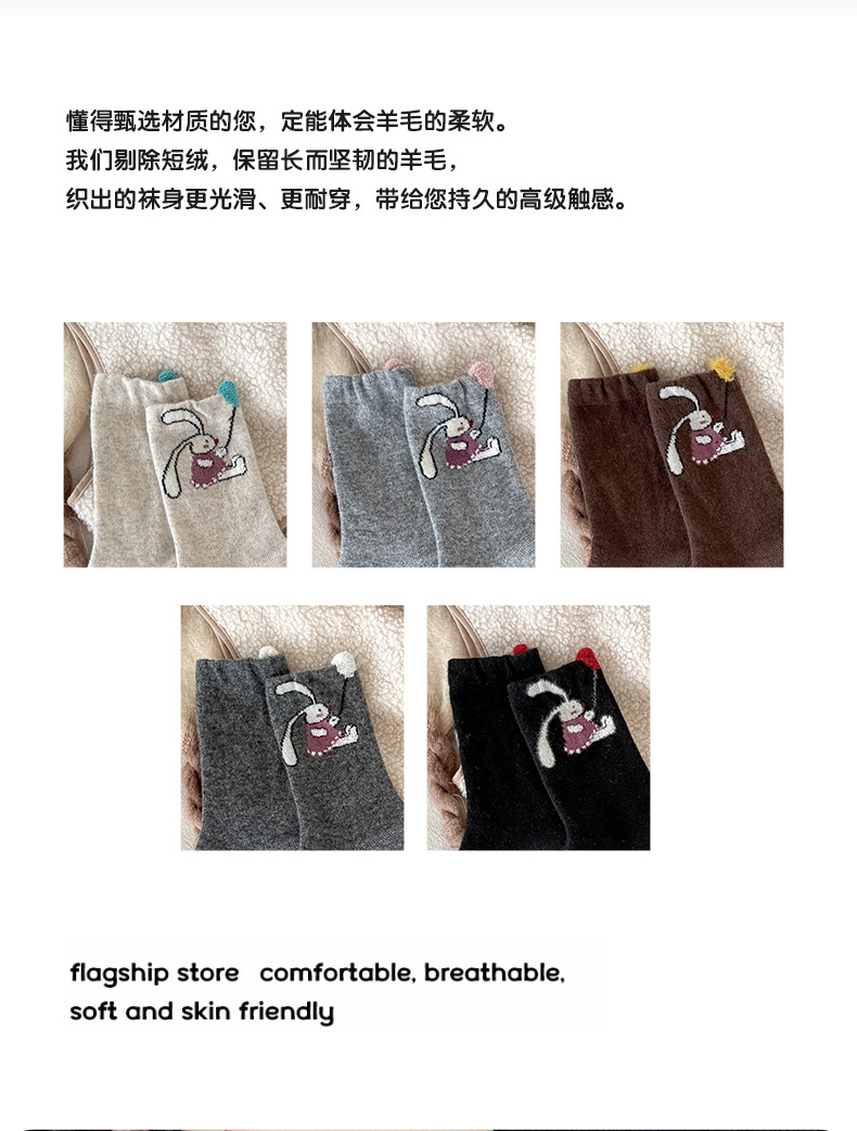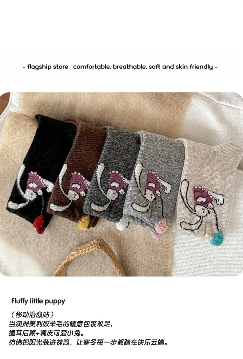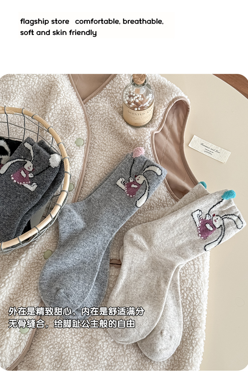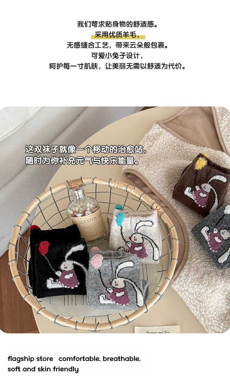 袜子秋冬加厚保暖绵羊毛柔软可爱气球小兔中筒袜韩系女厚款堆堆袜
