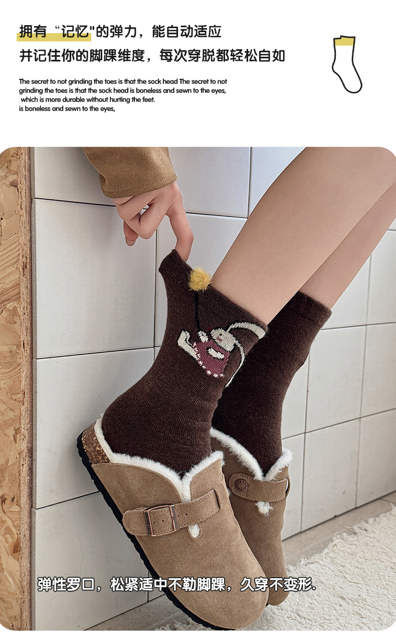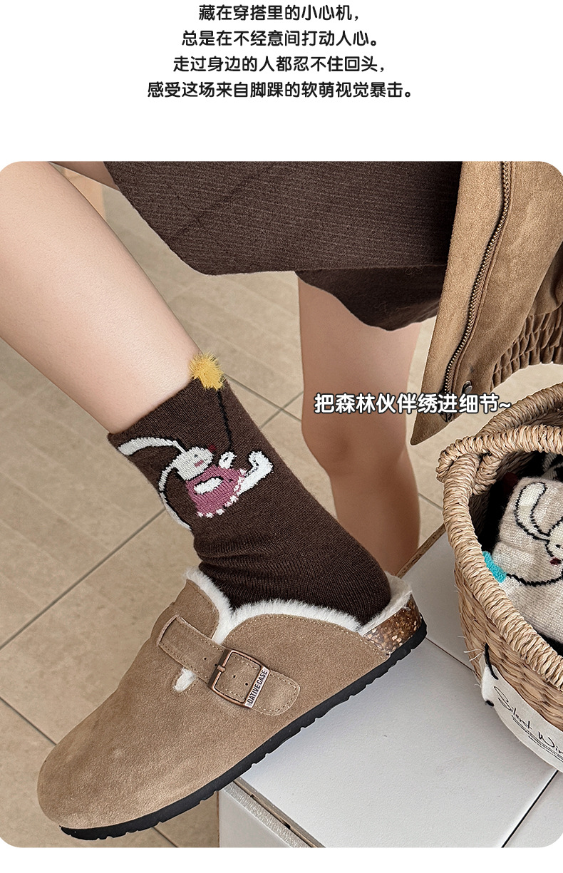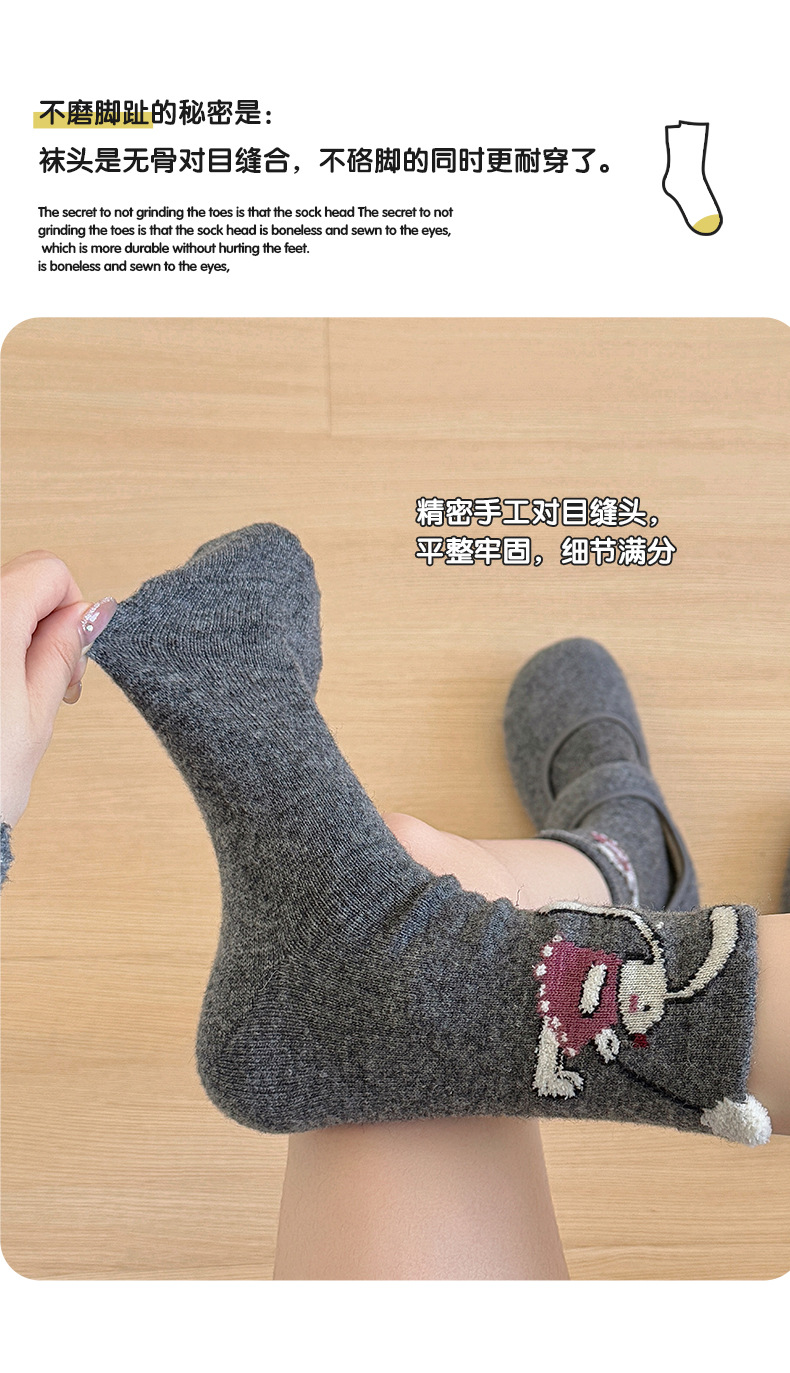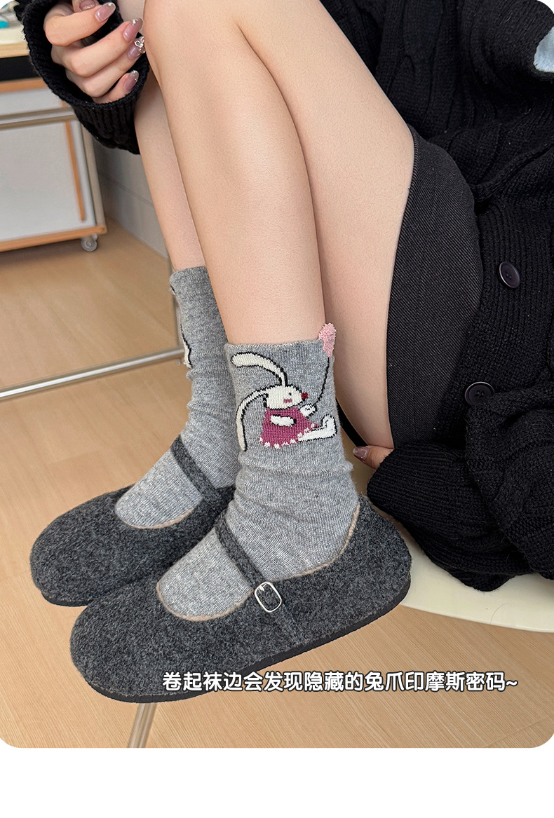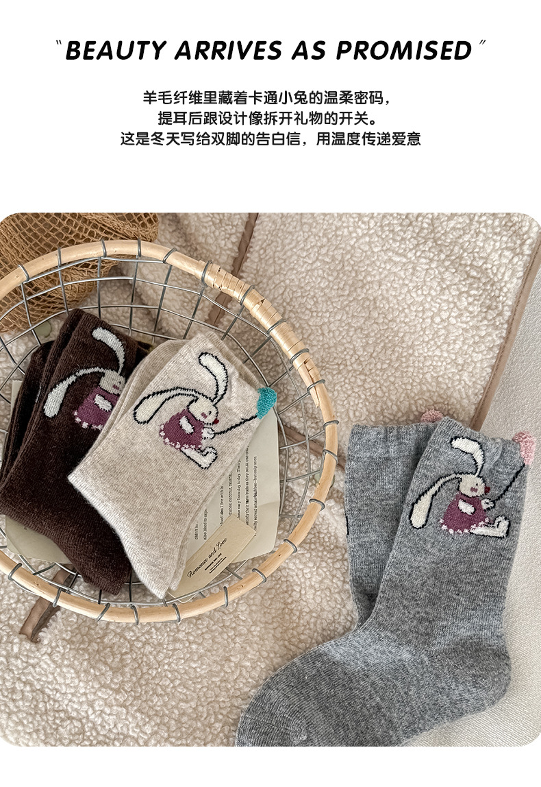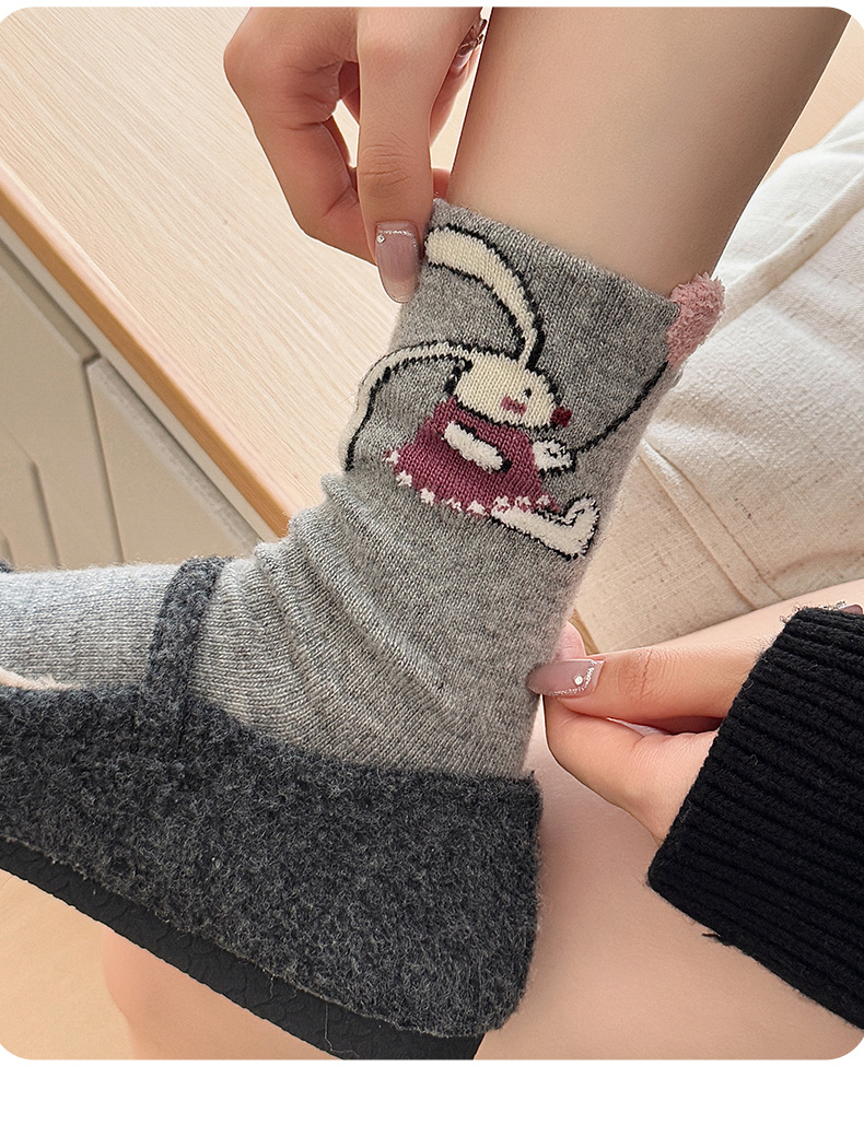 袜子秋冬加厚保暖绵羊毛柔软可爱气球小兔中筒袜韩系女厚款堆堆袜