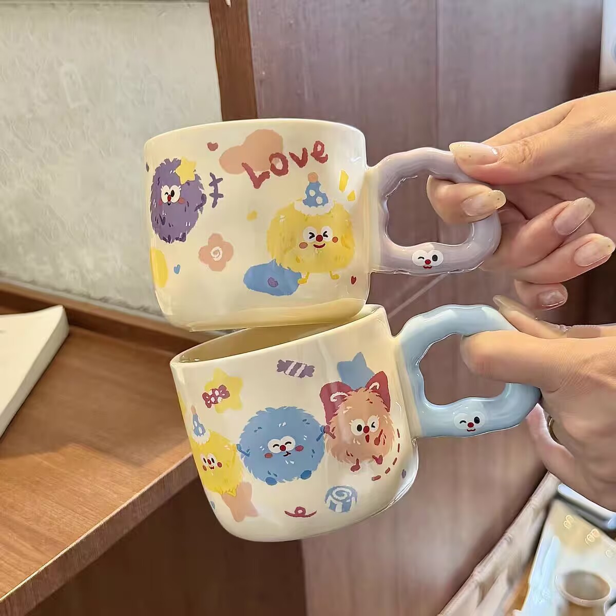 かわいい高颜値陶磁器カップ子供クリエイティブマグカップ家庭用カップルカップ男性オフィスコーヒー朝食カップ