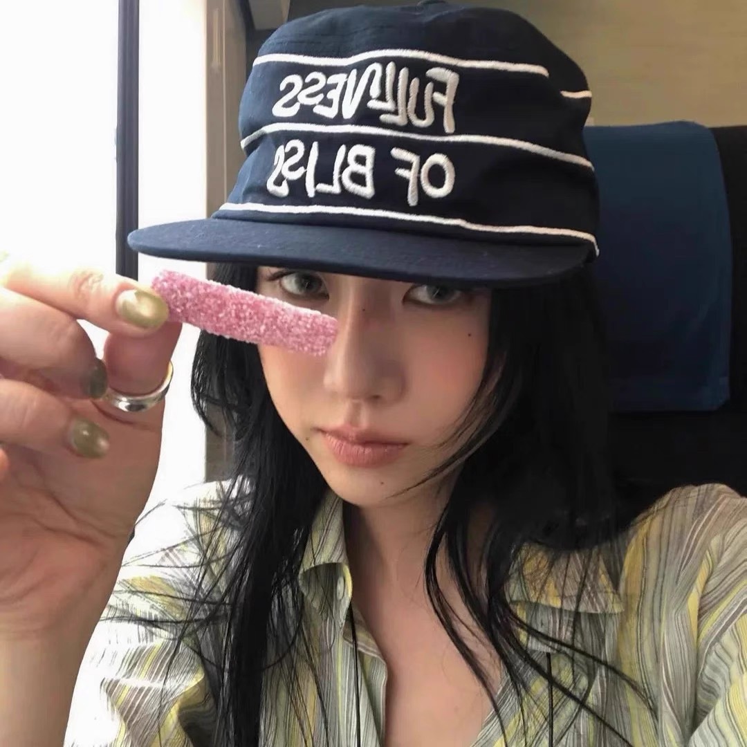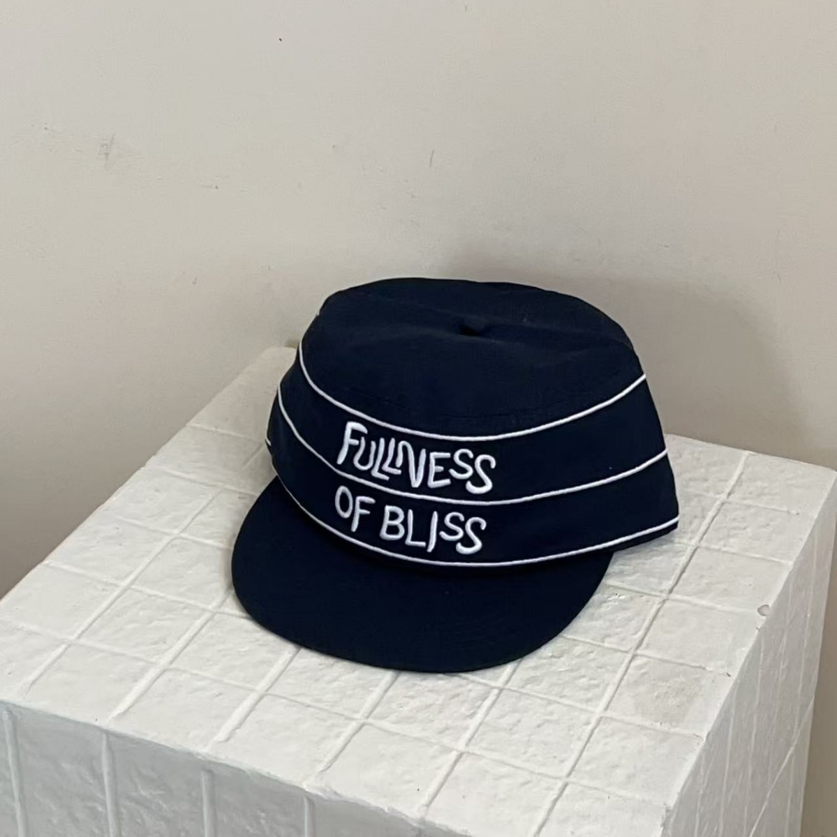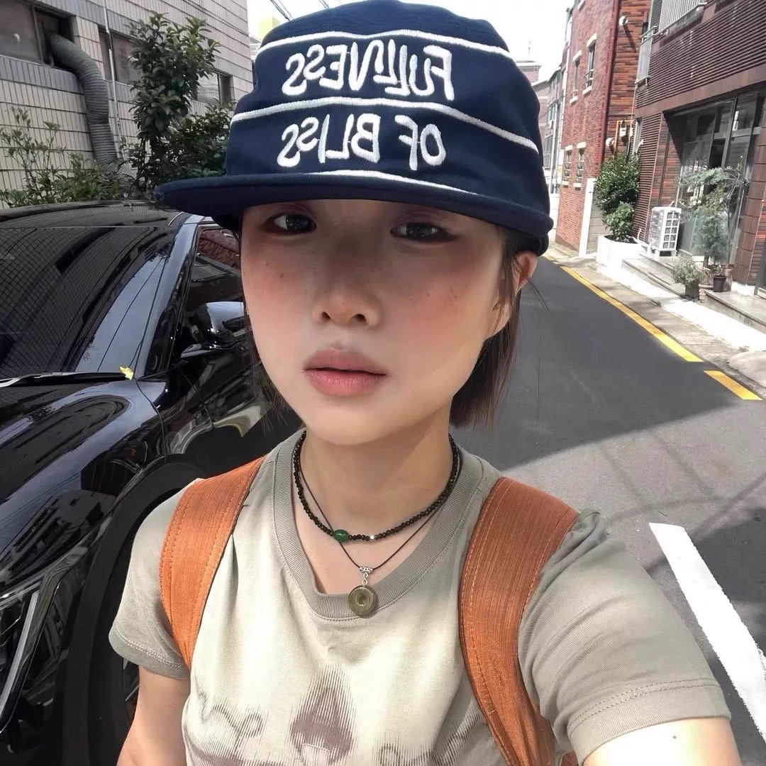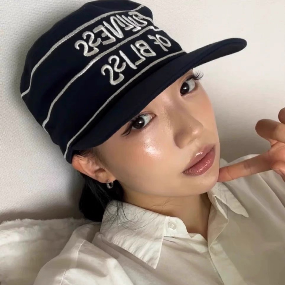 韩国小众设计师品牌25ss线条字母刺绣海军蓝药盒帽 鸭舌帽新款
