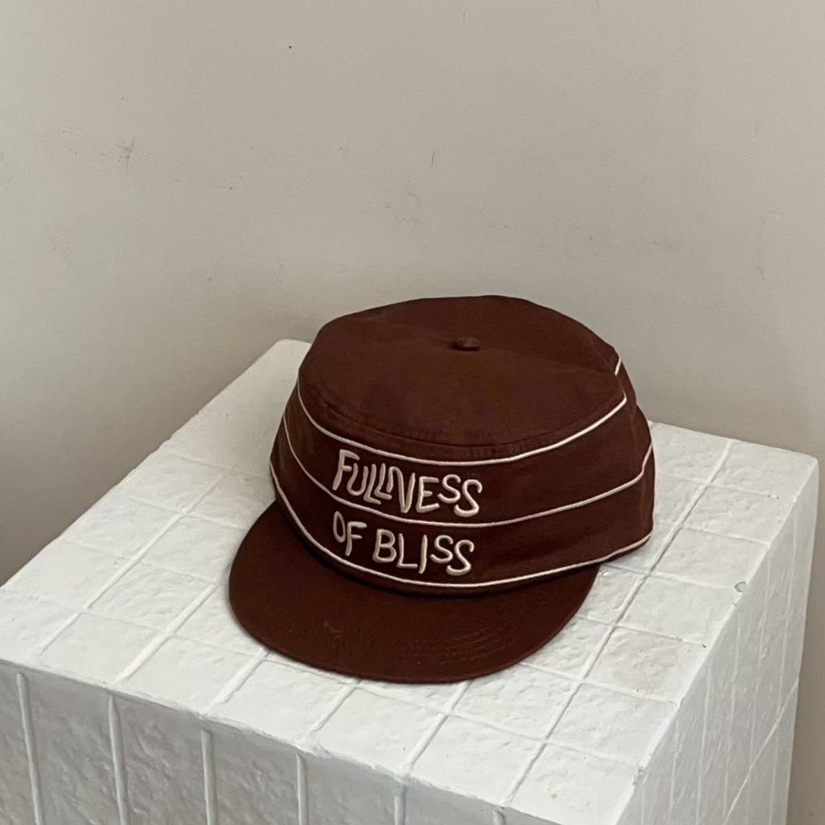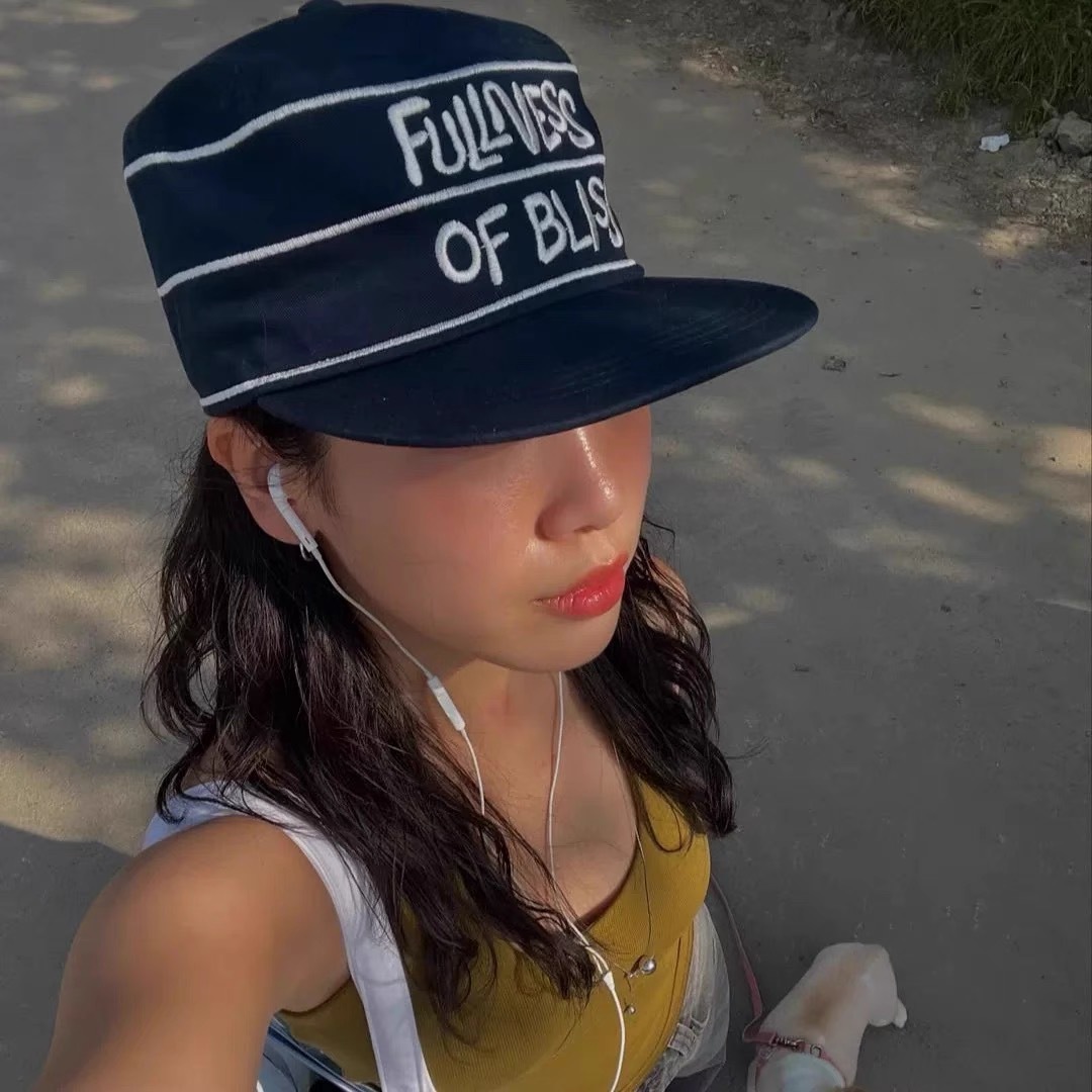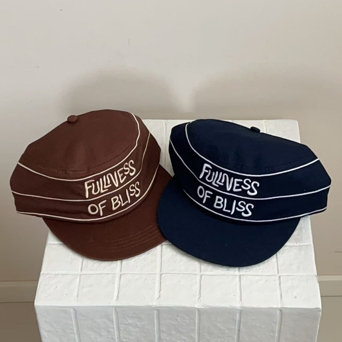 韩国小众设计师品牌25ss线条字母刺绣海军蓝药盒帽 鸭舌帽新款