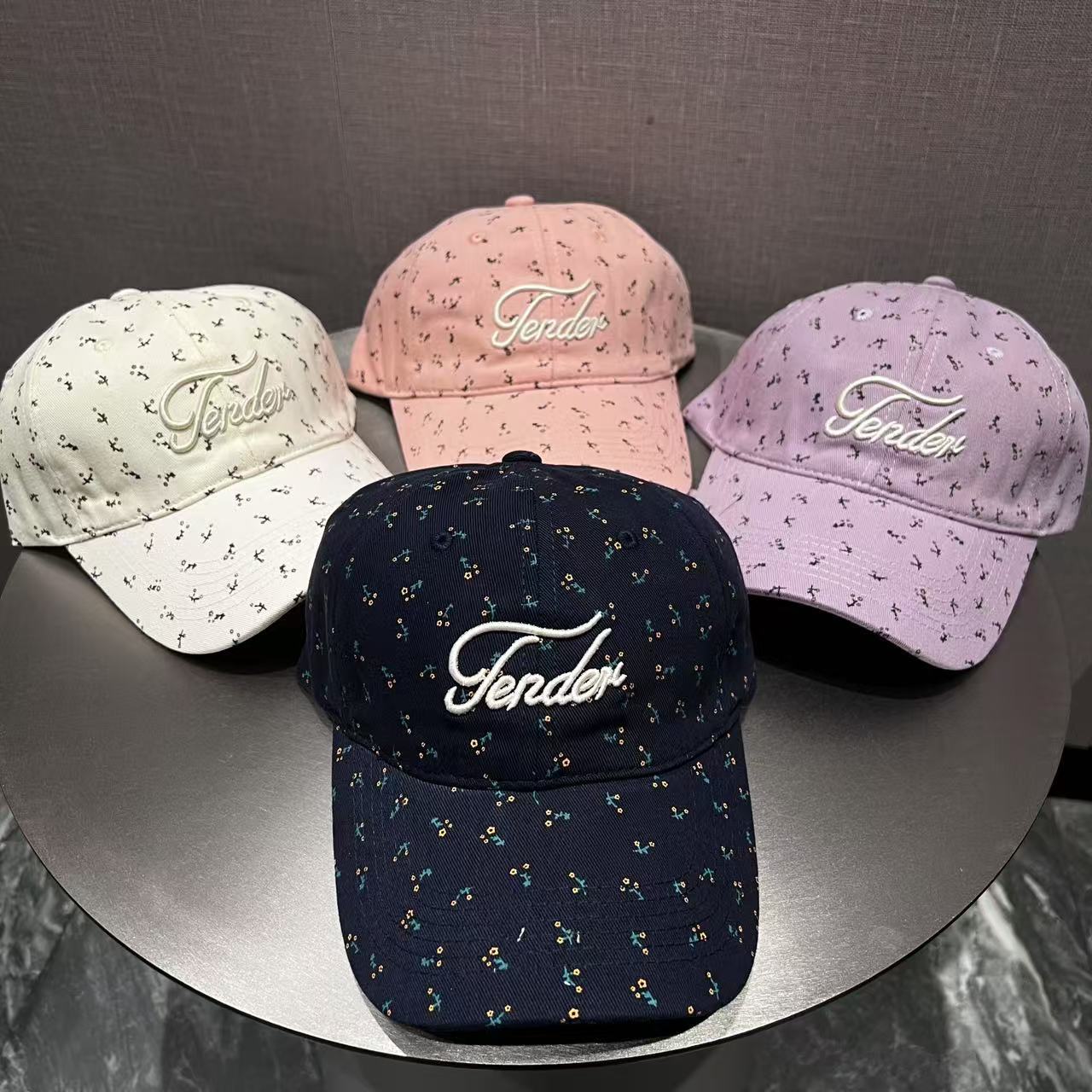 韩系ins小清新碎花字母刺绣棒球帽女软顶时尚可爱减龄鸭舌帽批发