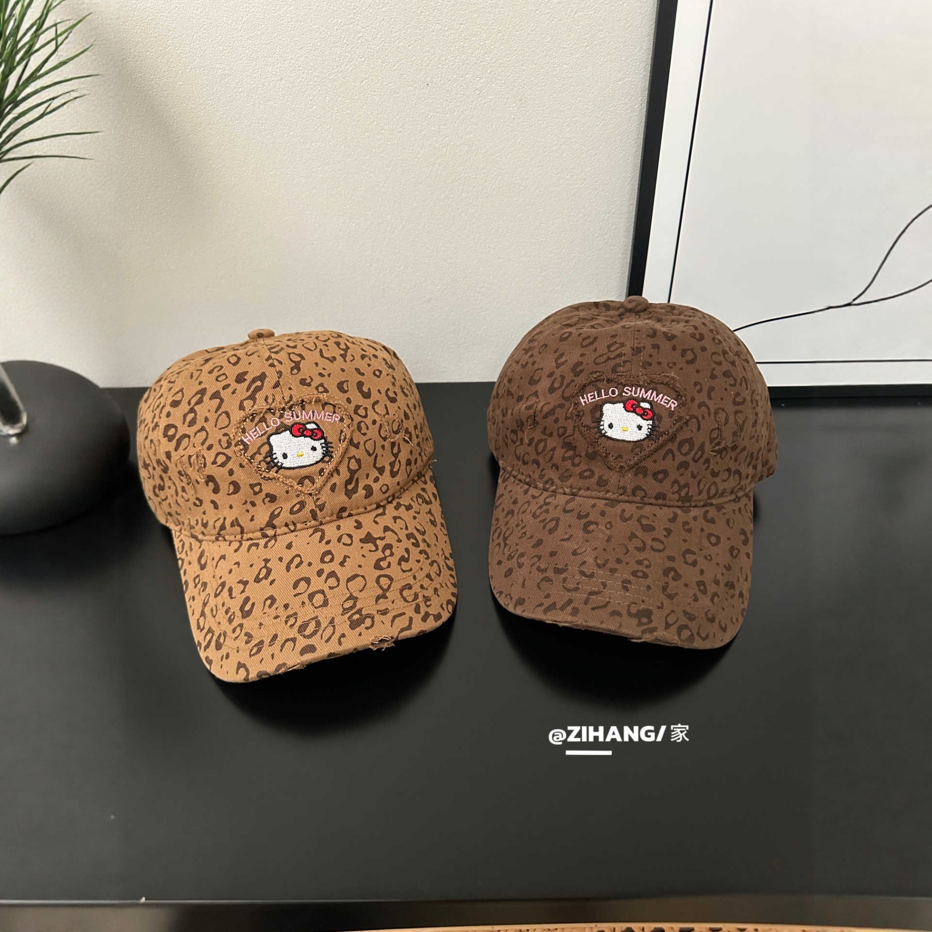 美式复古豹纹刺绣字母棒球帽女软顶磨破嘻哈千禧KT猫可爱鸭舌帽