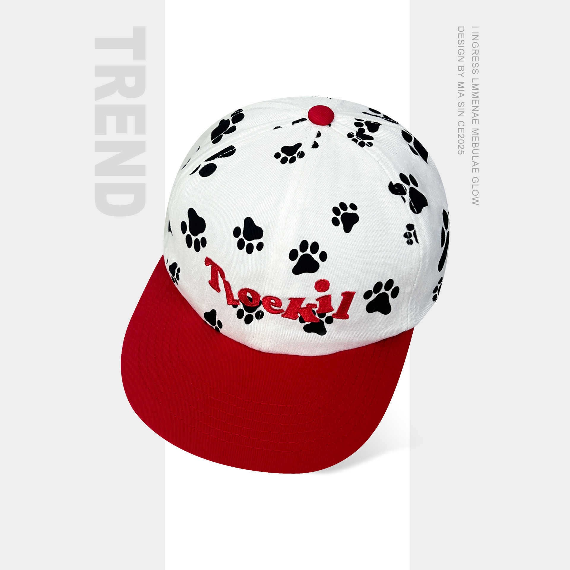 韩国涂鸦小狗脚印拼色平檐鸭舌帽女街头嘻哈滑板帽显脸小棒球帽男