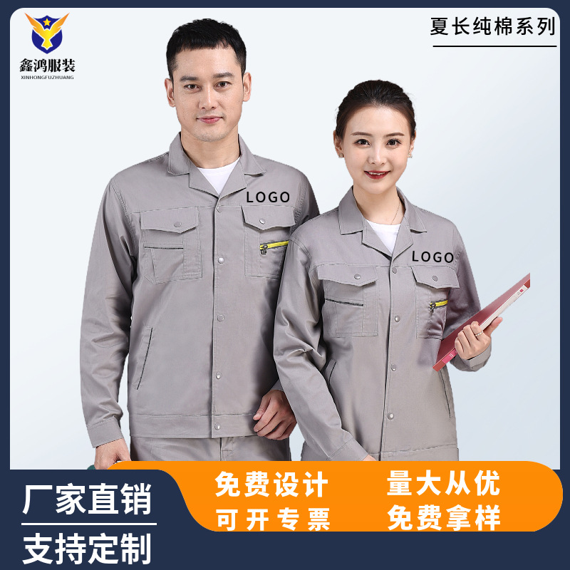 純綿夏薄手吸汗作業服セット男女工場服事務職業服作業服労働保険メーカー卸売り