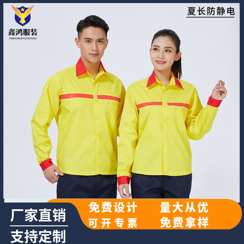 夏の長袖静電気防止作業服ガソリンスタンド労働保険服食品電子ガスステーション工場服工装卸売り